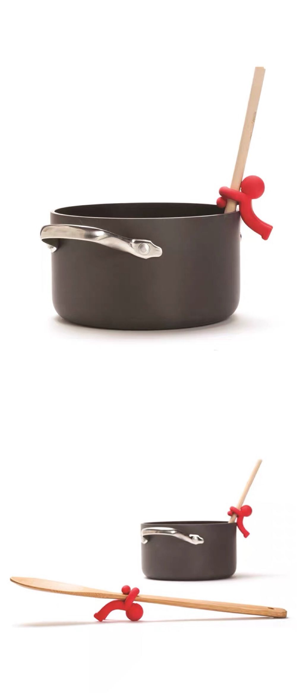 這個可愛的紅色小人名叫Doug,他最喜歡的事就是抱住你的湯勺,牢牢地hold住勺子架在鍋沿,不讓勺子滑進鍋里。他還可以變身勺架立在臺面上,讓廚房的臺面保持干凈。這樣的一點點小事,也會因為他的出現讓你變得輕松。