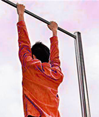 我個人非常推薦“吊單杠”這個動作。“吊單杠”可以模仿靈長類動物的抓握懸吊姿勢,它不僅僅對人體的肩關節很有益處,而且可以“拉開”放松由于受重力影響的大部分關節。