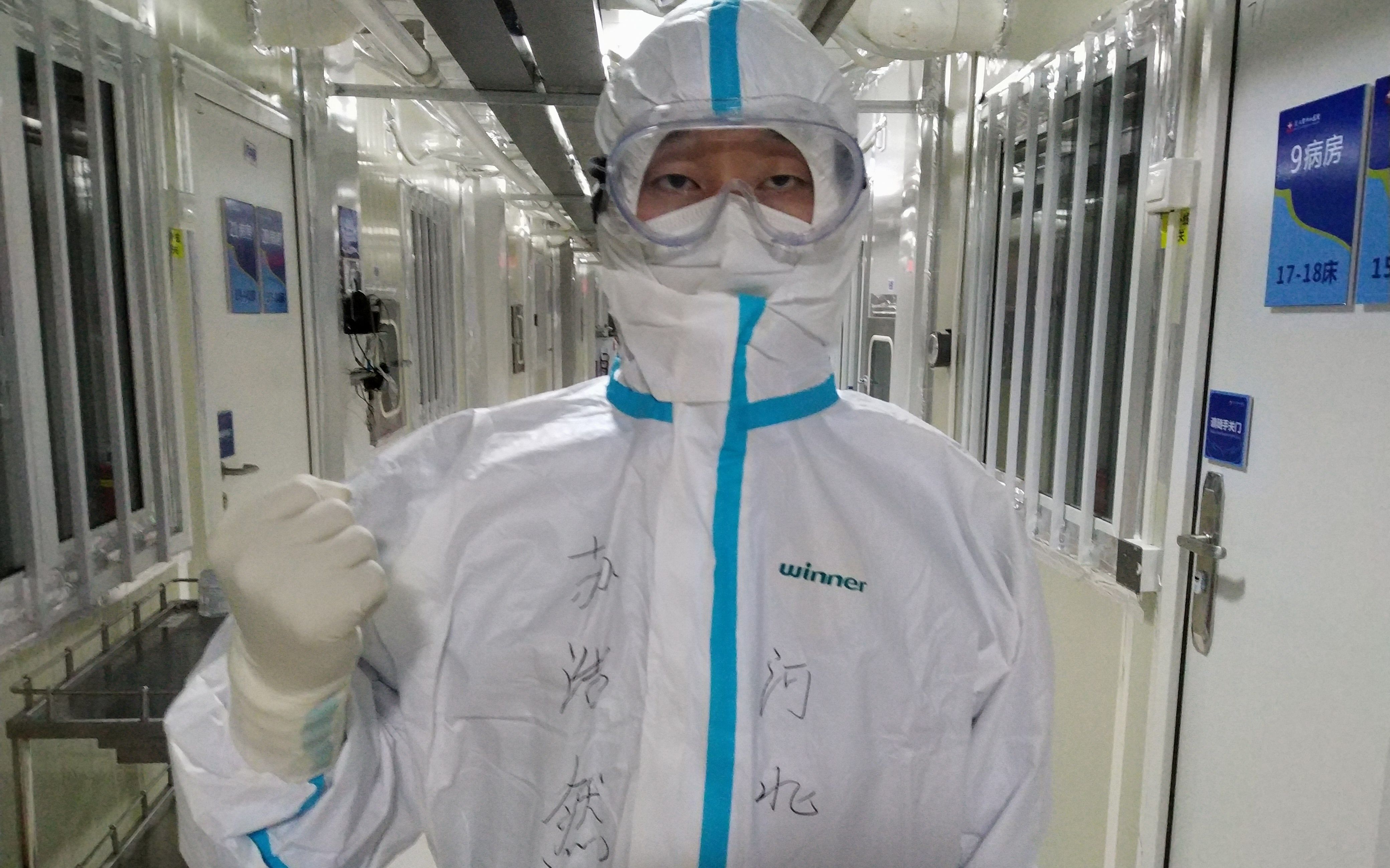 2月19日7點多,終于等到了護理部的通知,告知我今日啟程前往武漢,醫院為我們準備了齊全的物資讓我們沒有后顧之憂。到達武漢之后的前幾天,我們經歷了嚴格的培訓:房間三區分離(清潔區、半污染區、污染區)、咽拭子、血氣分析標本采集、呼吸機以及高流量吸氧機的使用,通過了院感培訓、his系統應用的操作,更在演練中熟悉了穿脫防護服流程。