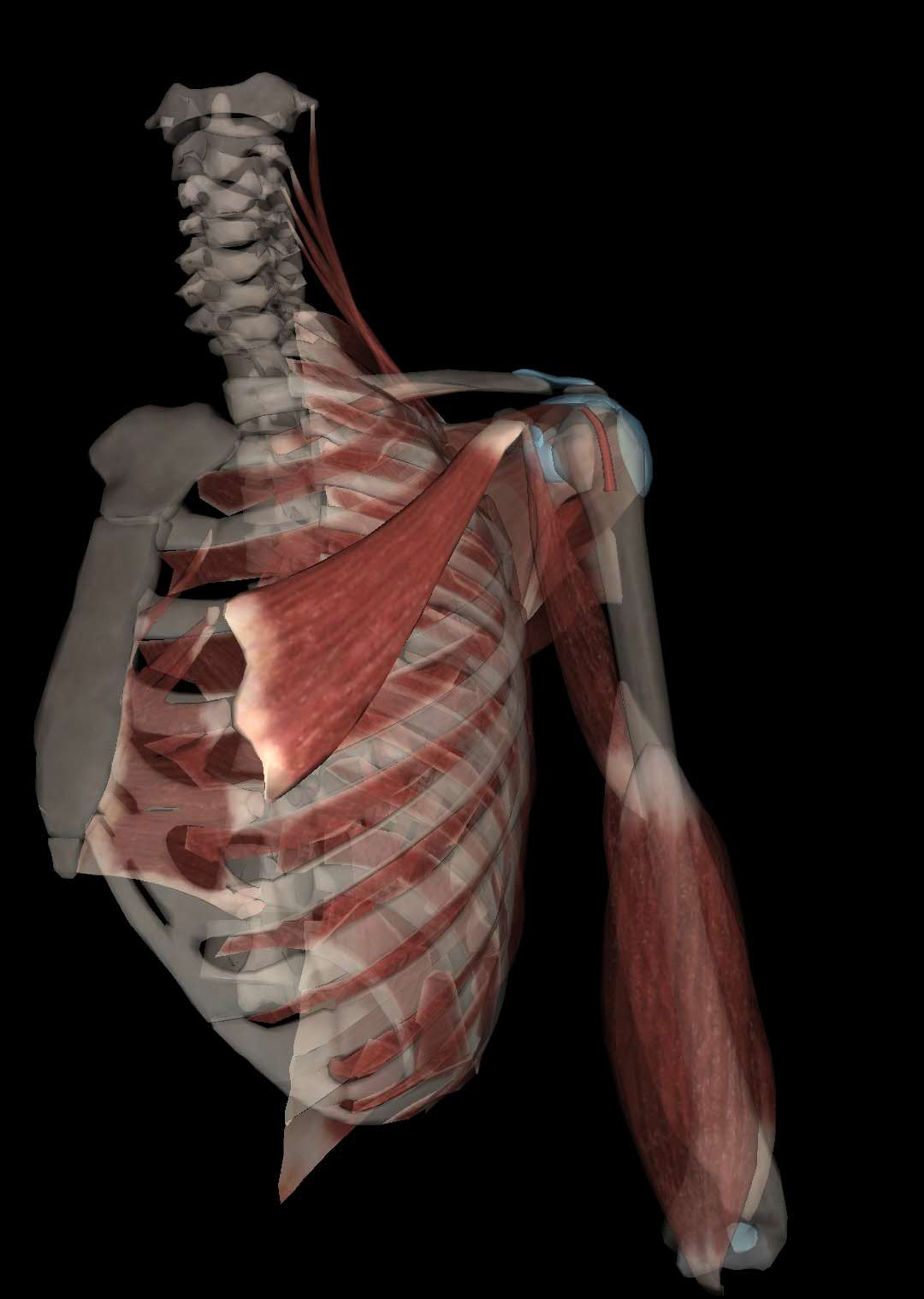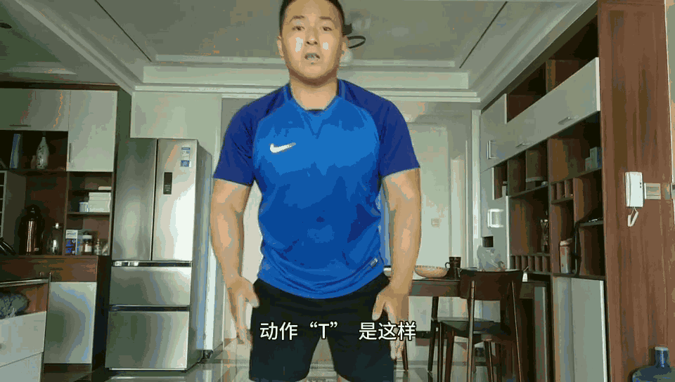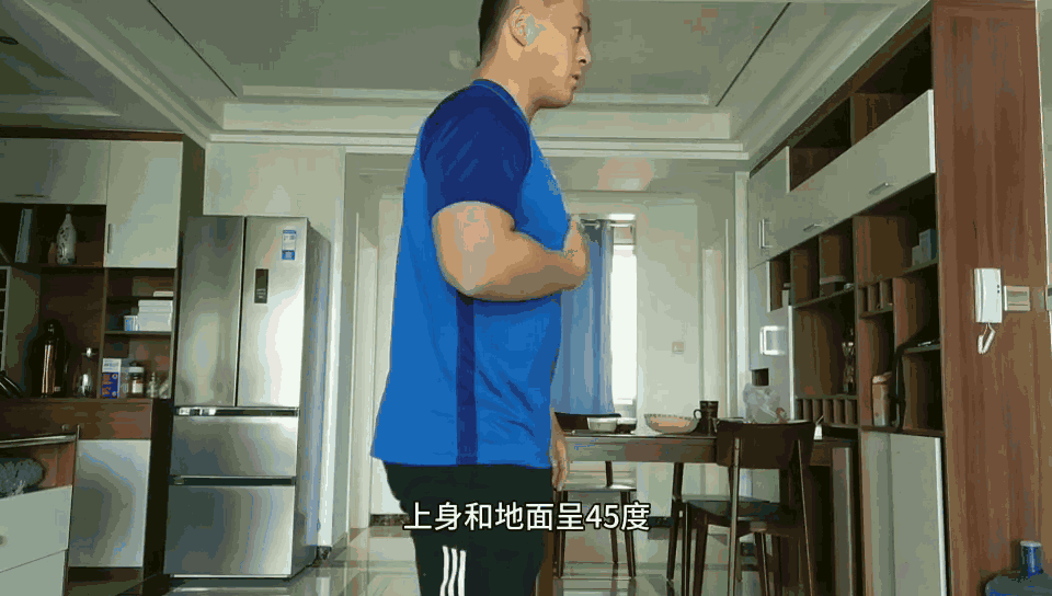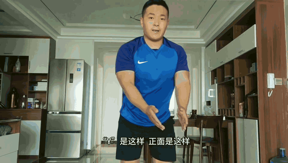 注意:不僅僅是抬起手臂,而是靠肩和背把手臂拉上去。
