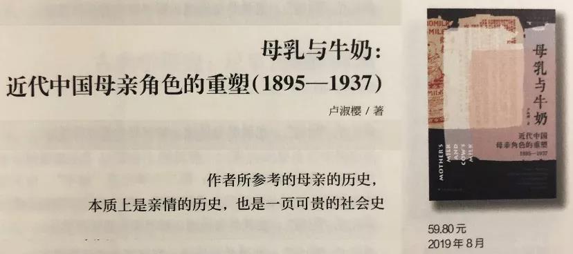 《母乳與牛奶:近代中國(guó)母親角色的重塑(1895-1937)》一書作為婦女史的一部分,不僅為母親歷史補(bǔ)白,更以婦女作為母親的眼光探索近代中國(guó)的社會(huì)變化。作者整理了那個(gè)時(shí)代以哺育為題的生活記錄、電影、照片、漫畫等資料,還原出一個(gè)較全面的近代中國(guó)母嬰史,是較為鮮見的“母親”研究。通過這段歷史我們可以多一個(gè)角度理解昨天和今天的中國(guó)。