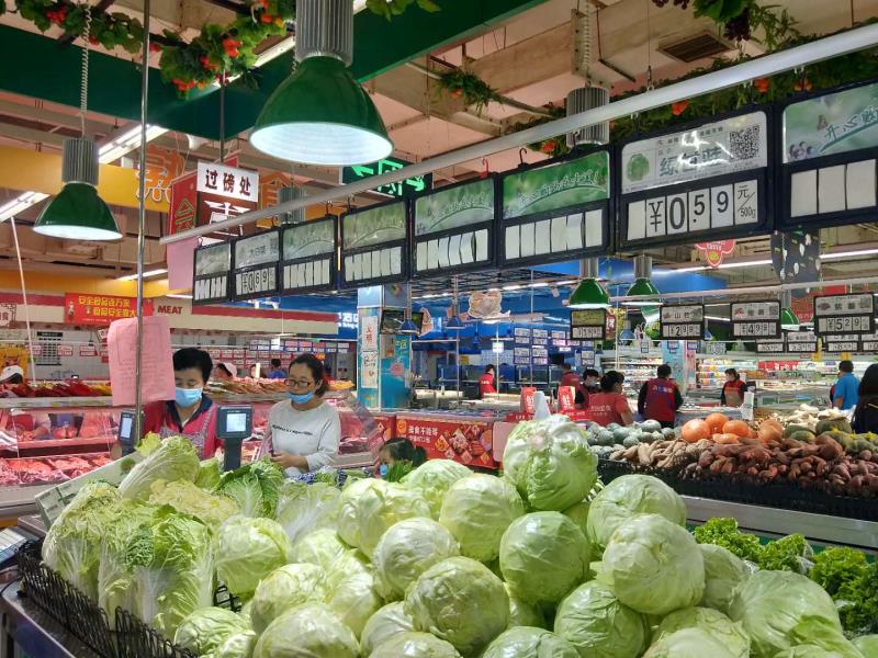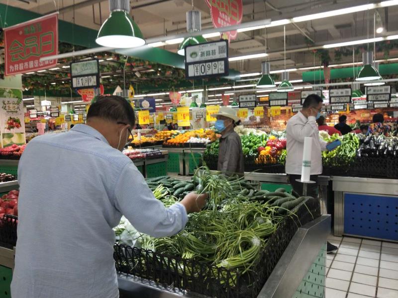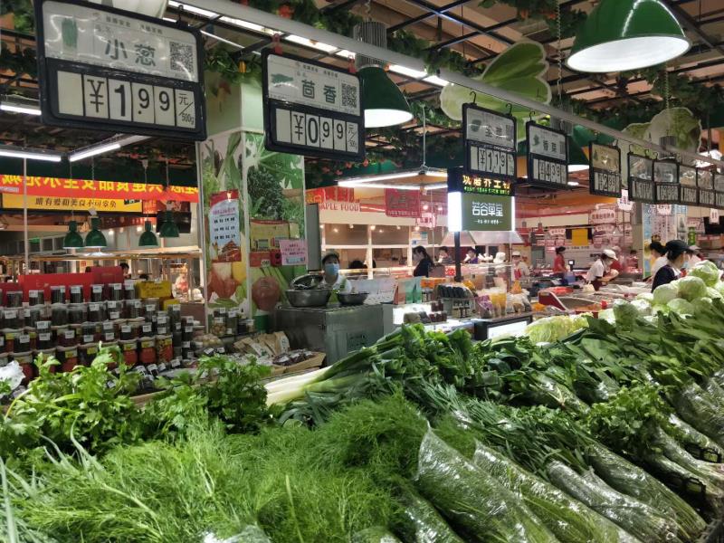 記者在中心街一大型超市的蔬菜區看到,各類蔬菜應有盡有,不少市民在選購新鮮的蔬菜。新蒜薹每斤0.99元、西紅柿1.99元/斤、黃瓜1.5元/斤、茴香0.99元/斤、韭菜1.19元/斤、菜花1.99元/斤、白菜0.69元/斤、甘藍0.59元/斤、西葫1.79元/斤。“從5月開始,明顯感覺蔬菜價格回落,尤其是一些家常菜,現在都不貴,每斤一兩元的蔬菜真不少。”市民周女士告訴記者。