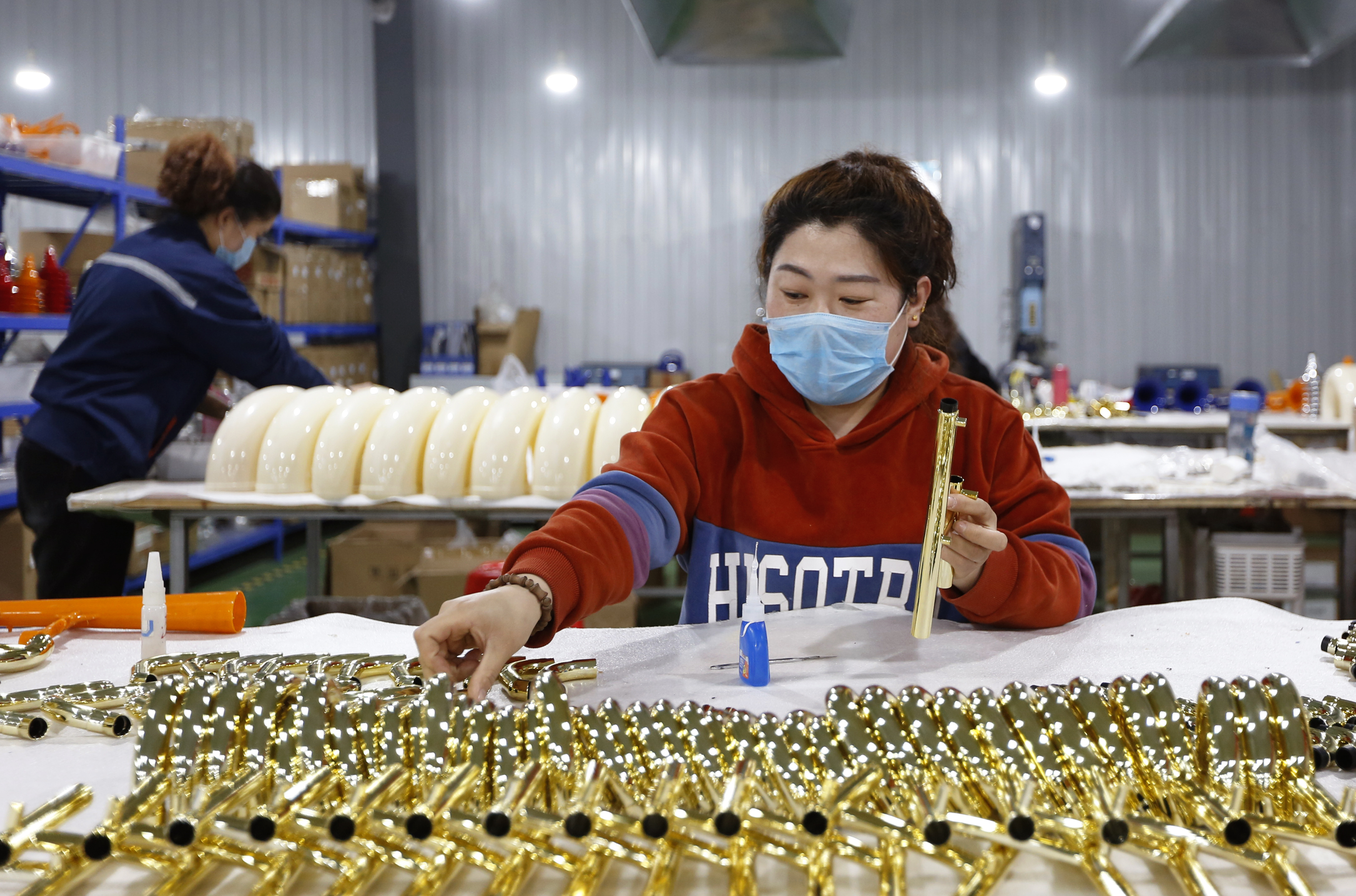 衡水市武強縣河北正歐實業有限公司內,員工對長號小支架進行組裝。