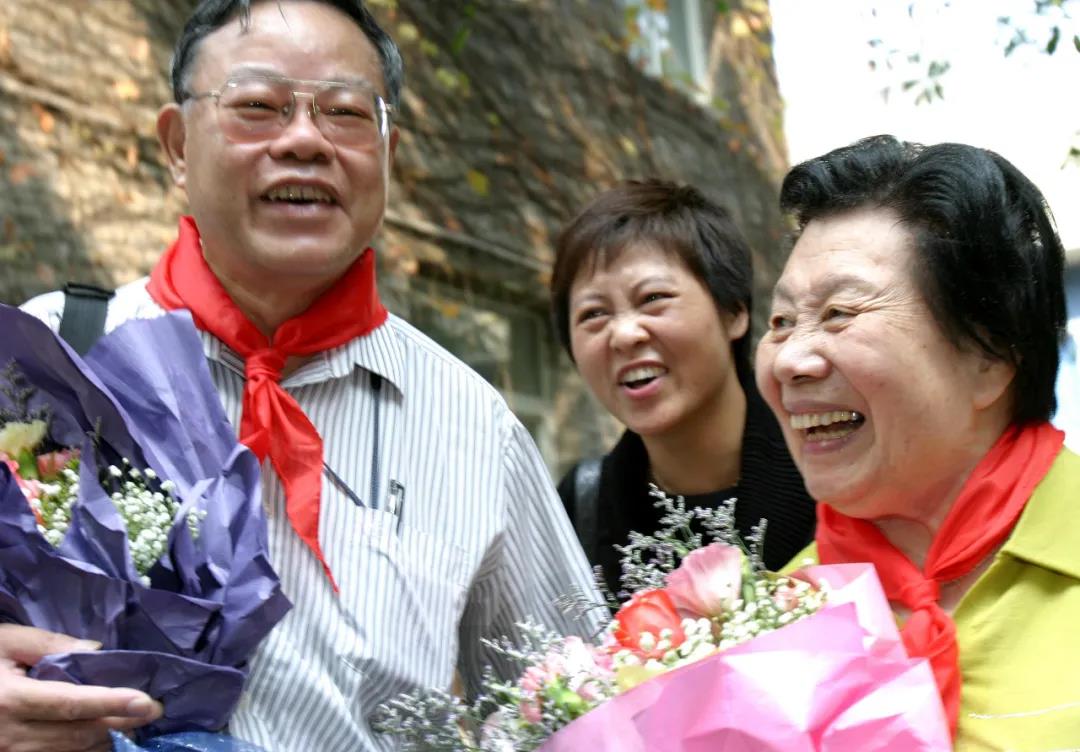 2006年10月28日,葉永烈(左一)回到自己的母校――溫州瓦市小學,拜訪當時的班主任、現已80歲高齡的范克榮老師(右一),兩人近60年后再相見,都十分高興