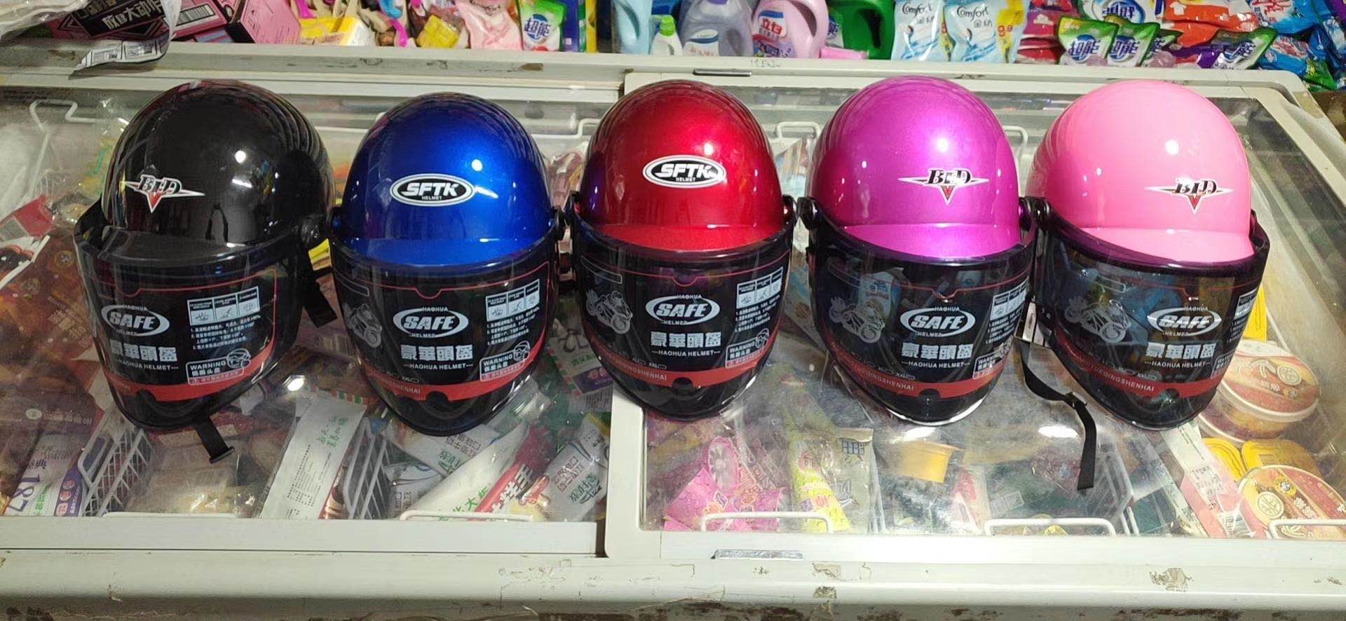 18日下午,記者來(lái)到市區(qū)問(wèn)津街小商品批發(fā)市場(chǎng),發(fā)現(xiàn)大批市民正在搶購(gòu)頭盔。在一家平時(shí)售賣電動(dòng)車擋風(fēng)被的商家門前,各種各樣不同顏色的頭盔擺了一地,“這是半遮陽(yáng)的,這是全遮陽(yáng)的,這個(gè)頭盔外殼是塑料的,這一種是鋼盔……”商家向市民介紹著頭盔的種類。