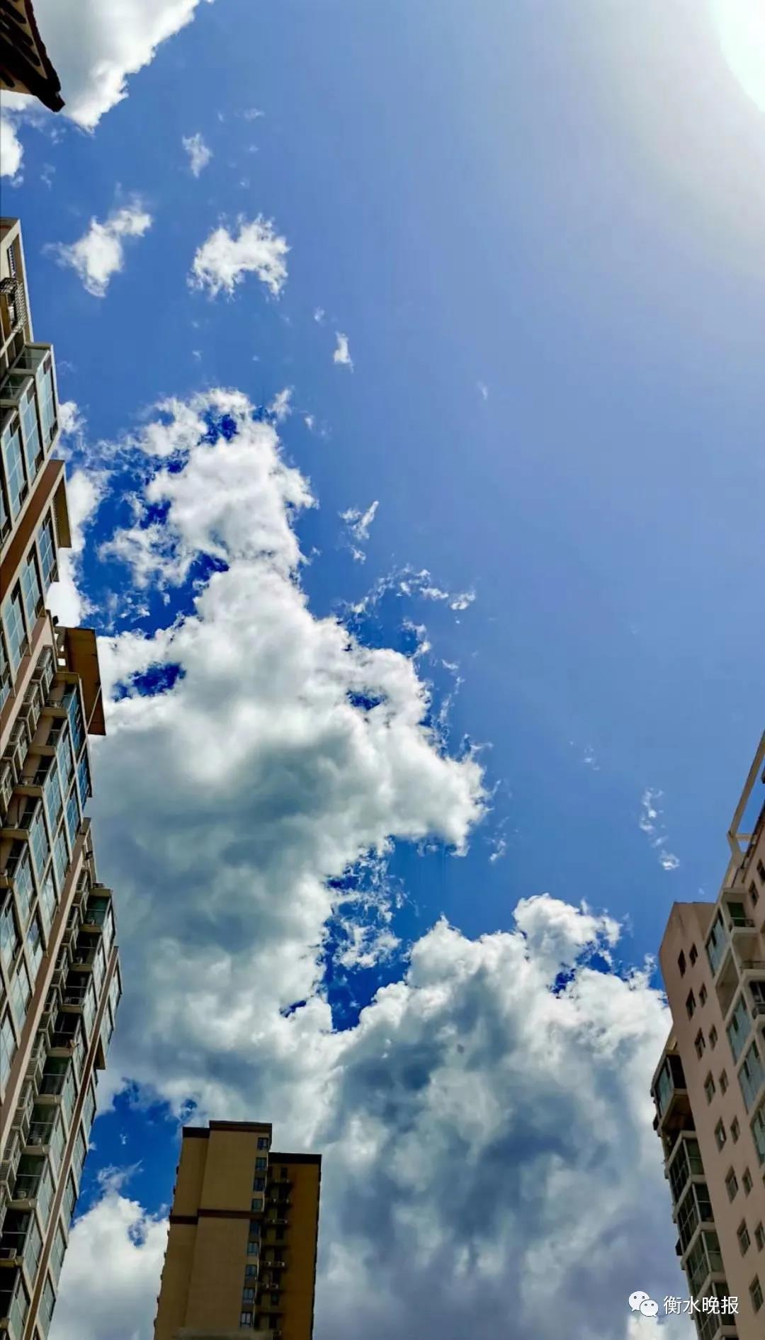 云兒輕盈地跳著、舞著,掠過衡水湖的湖面,把水面也變成了“藍天”,讓鳥兒們驚奇而迷惑;飛至滏陽河畔,一不小心又融進了河水中,那一汪汪藍和一朵朵白隨河水蜿蜒漂浮著,不一會兒又在遠方與藍天“密會”,親昵“相戀”了;它們恣意地變幻著身姿,映在衡水城中央,躲在樓間、樹隙、窗前,忽而又悄無聲地飄進廣場上和公園里;風兒輕輕刮過,它們好像害了羞,俏皮地與人們玩起了捉迷藏。但無論多么低調,也隱藏不住它們的顏值和氣質,阻擋不了人們追逐的腳步,大家四處奔走著、搜尋著,尋找著各自心里最美的景色……