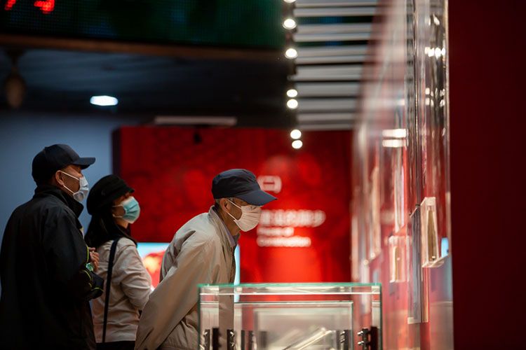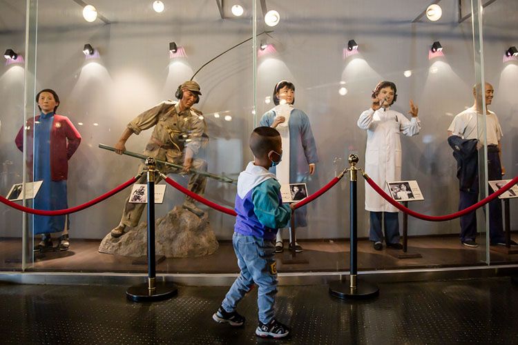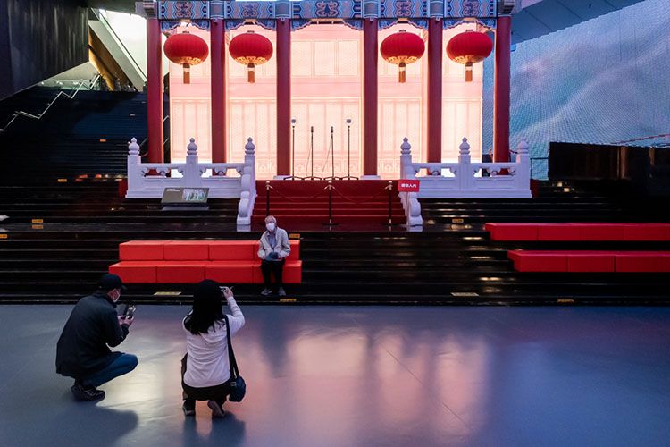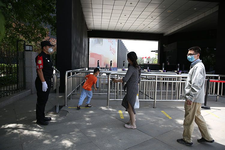 中國電影博物館入口處,觀眾保持安全距離入館。