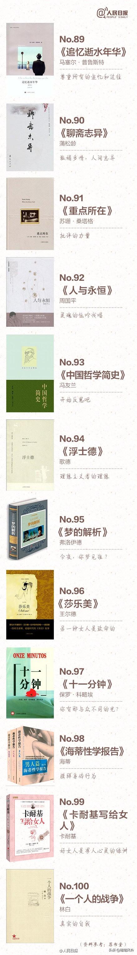 《人民日報》推薦給女性朋友閱讀的100本書,在書香中,與更好的自己相遇,轉給你心愛的那個她吧!