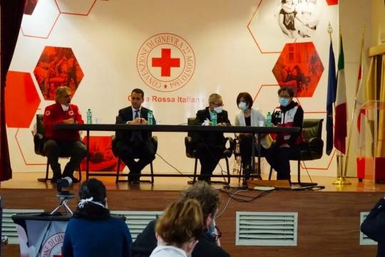 援意中國抗疫醫療專家組舉行當地媒體見面會。圖片來源:意大利紅十字會。