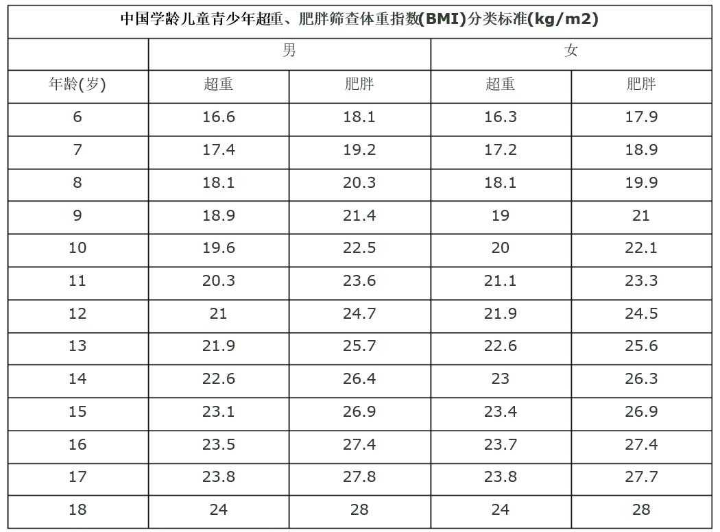 那么如何在早期發(fā)現(xiàn)兒童肥胖呢?醫(yī)學(xué)上有一套兒童超重和肥胖的判斷標(biāo)準(zhǔn)。賀源表示,3歲-18歲的兒童通過(guò)體質(zhì)指數(shù)(BMI)來(lái)判斷。BMI值=體重/身高2 (kg/ m2)。由于兒童處于生長(zhǎng)發(fā)育的特殊時(shí)期,以及性別、年齡的不同,判斷超重肥胖的BMI值也不同,因此兒童的超重肥胖BMI值并不是一個(gè)固定值。