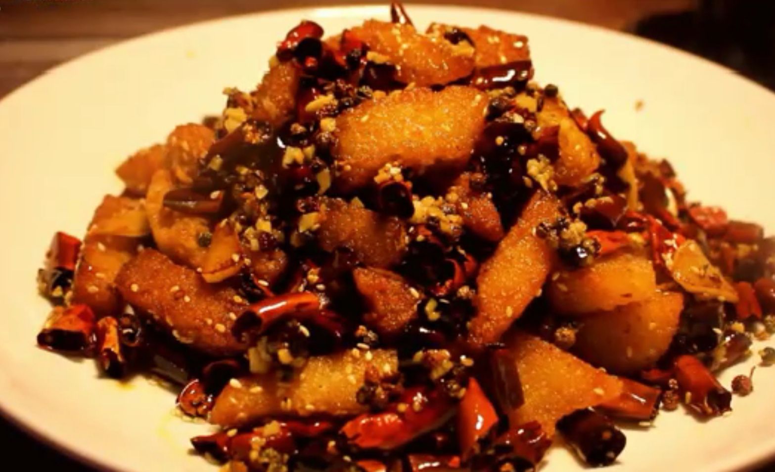 辣炒棕子可以說(shuō)是粽子的重口味吃法之一了,整體辣度和辣子雞相當(dāng),做法也與辣子雞有些類(lèi)似。先將粽子切成條狀,下油鍋炸至兩面金黃,撈出備用;準(zhǔn)備粽子三四倍分量的干辣椒、少許蔥姜蒜,下鍋煸炒1-2分鐘;倒入炸好的粽條翻炒幾分鐘;最后,放入少許生抽、鹽、白糖、白芝麻翻炒調(diào)味即可出鍋。