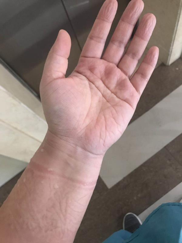 “我們都做過專業(yè)培訓,操作上十分熟練,所以盡管需要采集的數(shù)量大,但我并不發(fā)憷,加著小心取就行。”周紅說,最讓她頭疼的是面罩上的水霧,“越到后頭,霧氣越大,后來都匯聚成了水滴,順著面罩往下流,視線特別模糊。”最后實在看不清楚采集部位時,她只能憑自己敏銳的感覺,患者有輕微的惡心或躲避動作,說明棉簽觸及了咽喉部。采完后,她來不及歇息,立馬包裝、核對數(shù)量……一直忙碌到晚9時許才結束。“渾身濕漉漉的,沒有力氣,腿也發(fā)酸,一步都不想走了,就在地上坐了一會兒,又趕緊去交標本……” 脫去防護服后,她臉上滿是壓痕,手也腫脹泛白,但滿腦子里閃動的依然是工作的一個個細節(jié)。