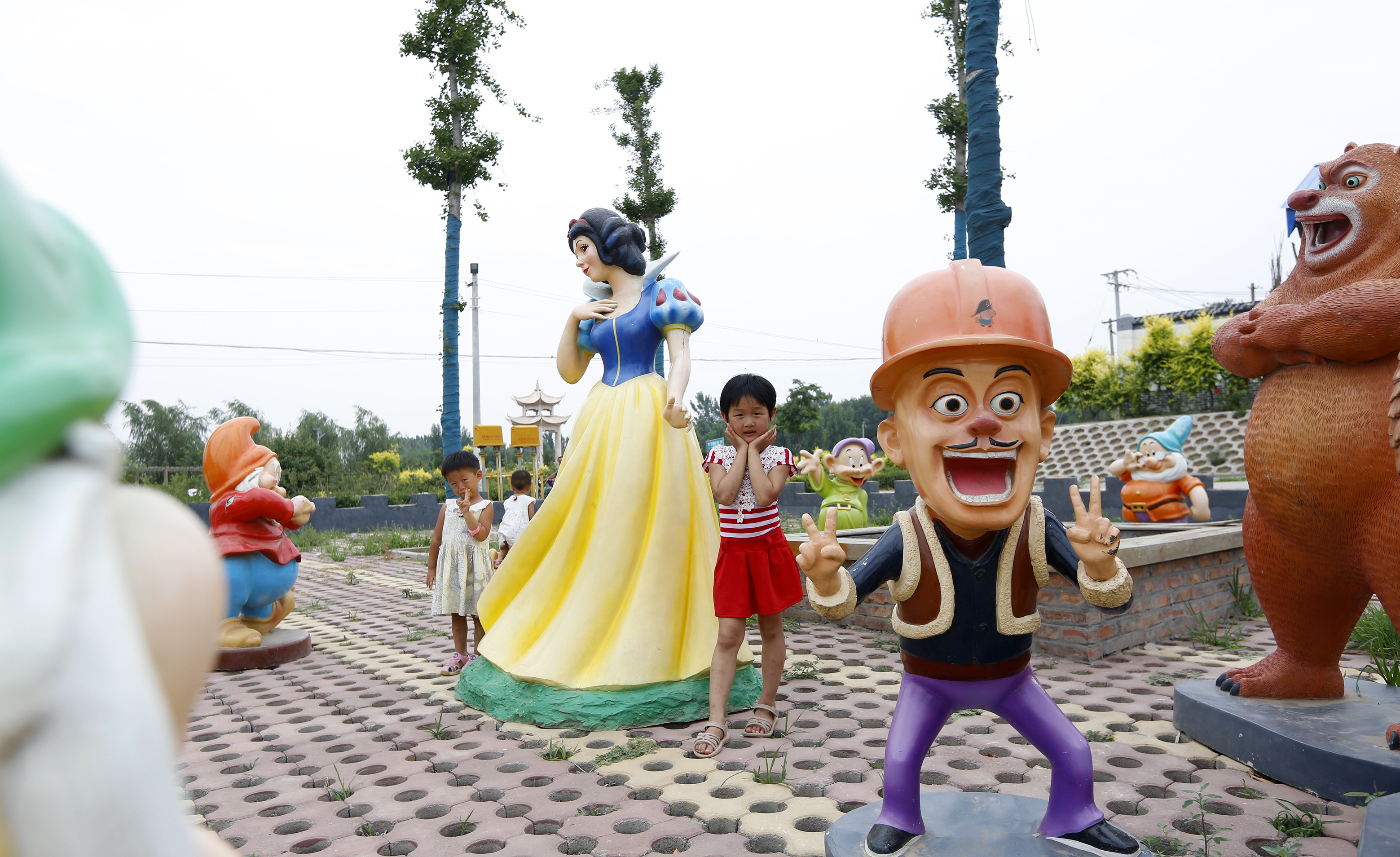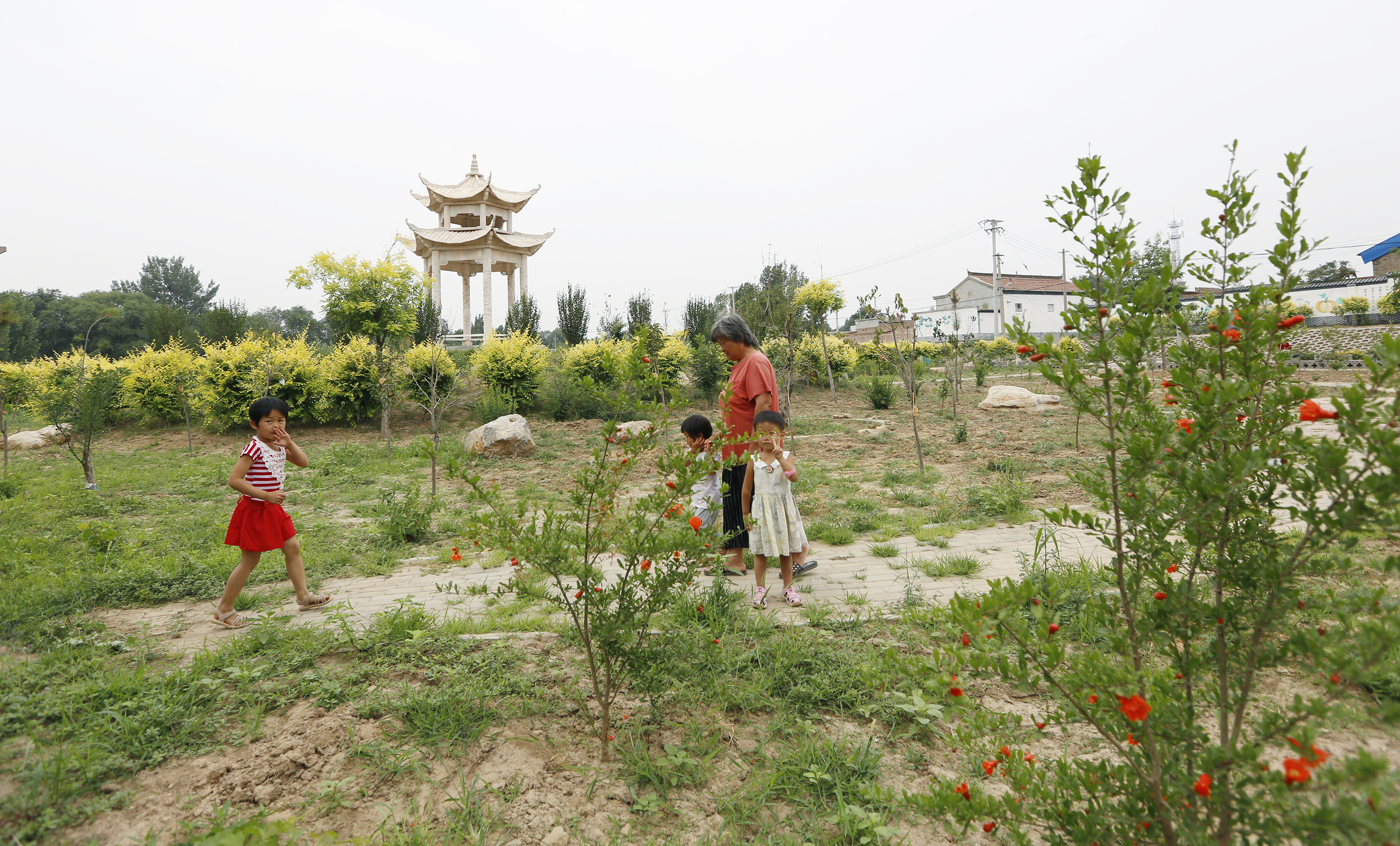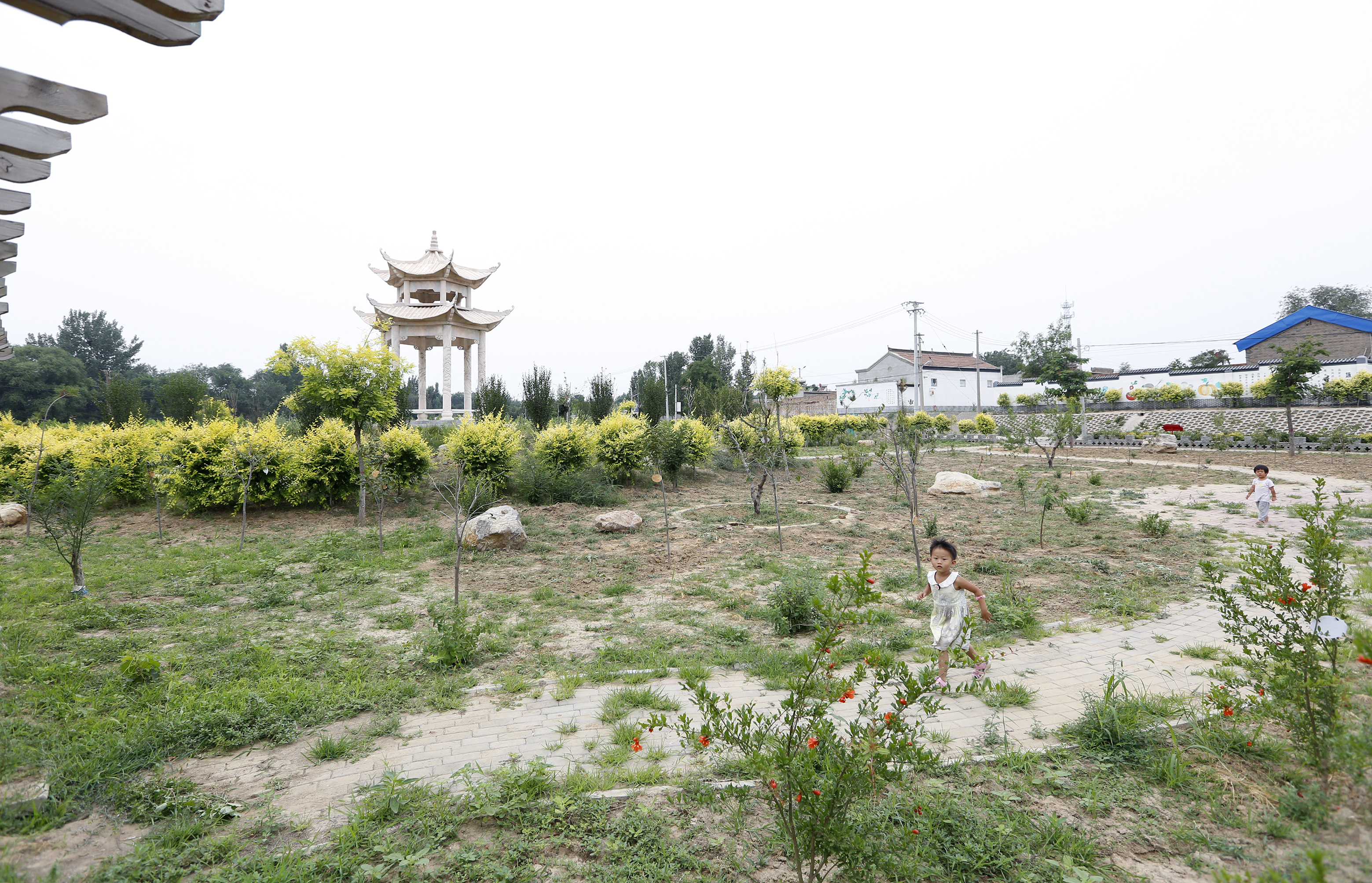 兒童在武邑縣審坡鎮賈寺院村“小游園”游玩。