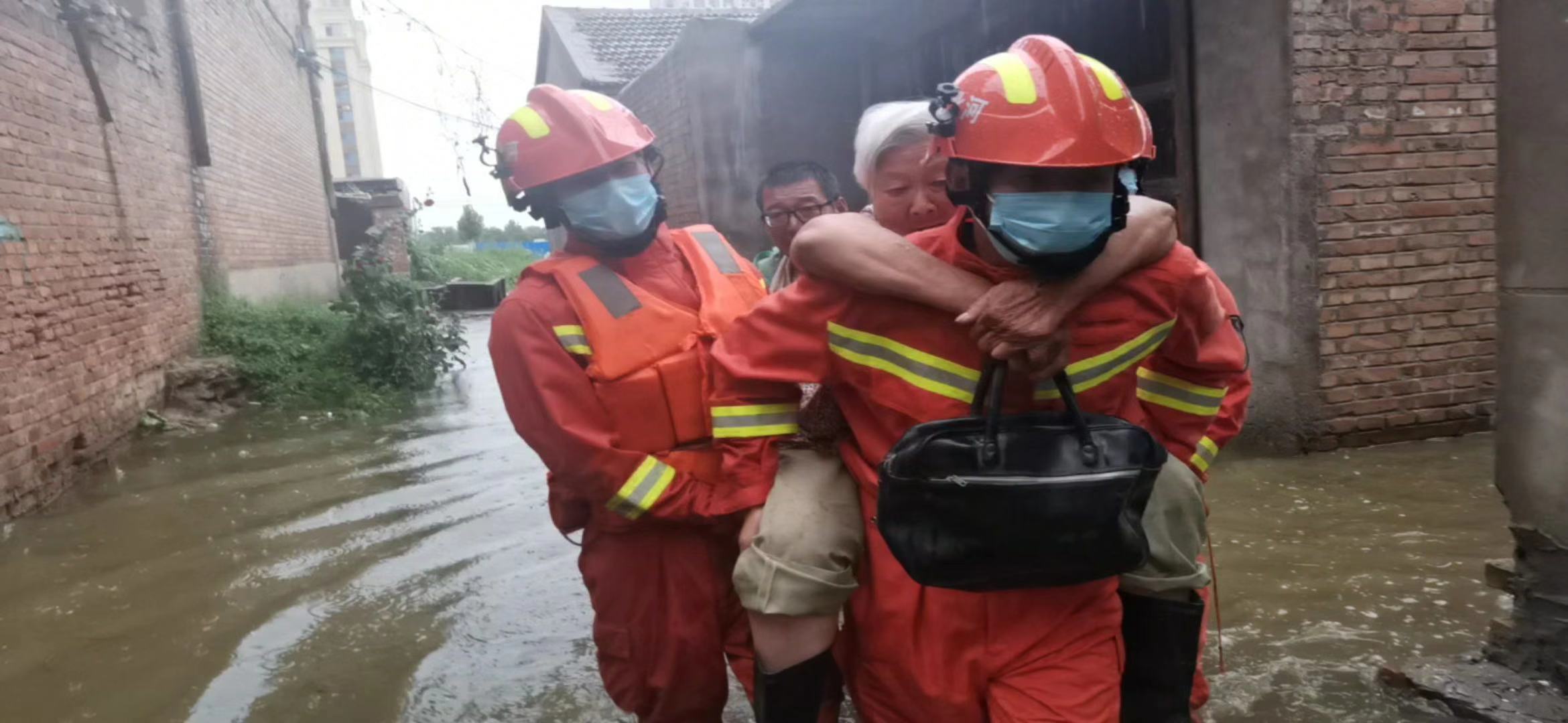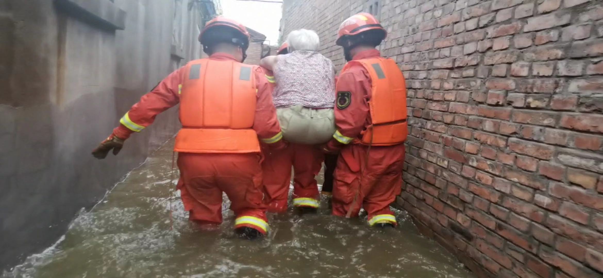 強降雨造成民房被淹,一位七旬老人被困家中,冀州消防快速行動,對被淹區域逐一排查,將被困人員轉移到安全地帶。
