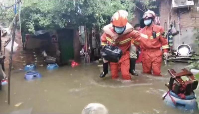 到達現場后,消防救援人員發現,受災區域屬于棚戶區,地勢較低,積水達到70厘米,此處的三排民房被積水浸泡,屋內出現雨水倒灌,部分群眾想辦法自救,已經轉移至安全區域。救援人員本著“救人第一,科學施救”的原則,兵分兩路,一方面利用浮挺泵、手抬式機動泵配合市政相關部門開展排水作業,一方面進行挨家挨戶逐一排查。排查過程中,大家發現一位70多歲的老人行動不便被困家中。消防救援人員迅速背起老人,將其轉移到安全地帶。在排查完畢確認無人員被困后,消防救援人員才放心離開。