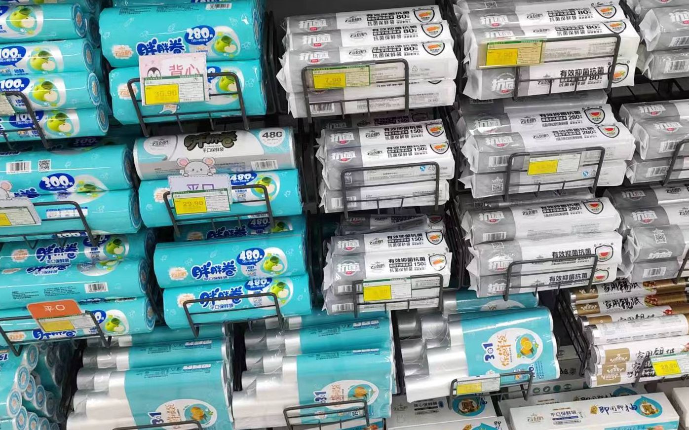 阮光鋒介紹,目前,市場上銷售的食品保鮮膜主要有三大類。第一類是聚乙烯(PE或LDPE)材質(zhì),主要用于水果、蔬菜、豬肉等生鮮食品的包裝;第二類是聚偏二氯乙烯(PVDC)材質(zhì),主要用于肉類熟食的包裝;第三類是聚氯乙烯(PVC)材質(zhì),可用于食品包裝。