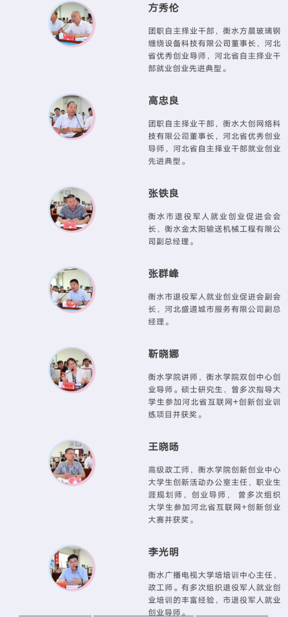 復賽采用6分鐘路演和5分鐘專家提問的6+5比賽模式,最后評選出“衡水貴和省級現代農業(yè)園區(qū)”項目為此次大賽的一等獎,“地下剛性復合防水技術”和“軍威一體化校園托管創(chuàng)業(yè)”兩個項目榮獲二等獎,“社區(qū)服務”、“魚菜共生微工廠”、“畝加里羊湯快餐連鎖”三個項目榮獲三等獎。以上獲獎項目將擇優(yōu)代表我市參加河北省“建行杯”退役軍人創(chuàng)業(yè)創(chuàng)新大賽。