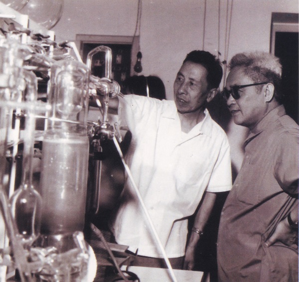 夏鼐(左)與外國(guó)學(xué)者參觀考古所的碳14實(shí)驗(yàn)室。資料圖