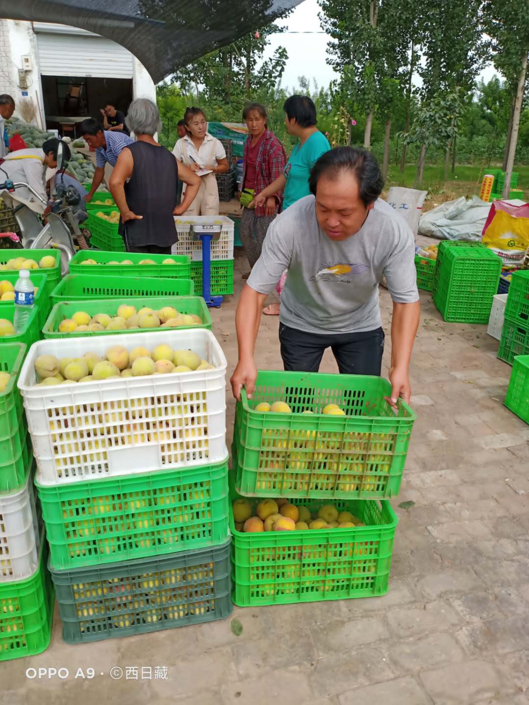 今年,950畝桃樹迎來第一個掛果季。田建平在他的收購點忙碌著,一筐筐、一袋袋的黃桃被農戶們運到這里過稱、過賬,熱火朝天的景象里,鄉親們兩年來的疑慮煙消云散。