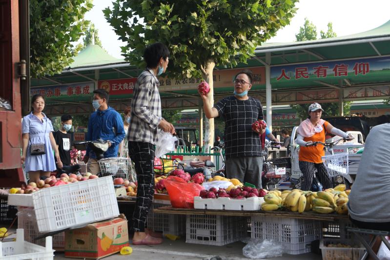 市民在滏陽(yáng)便民市場(chǎng)詢問(wèn)水果價(jià)格。
