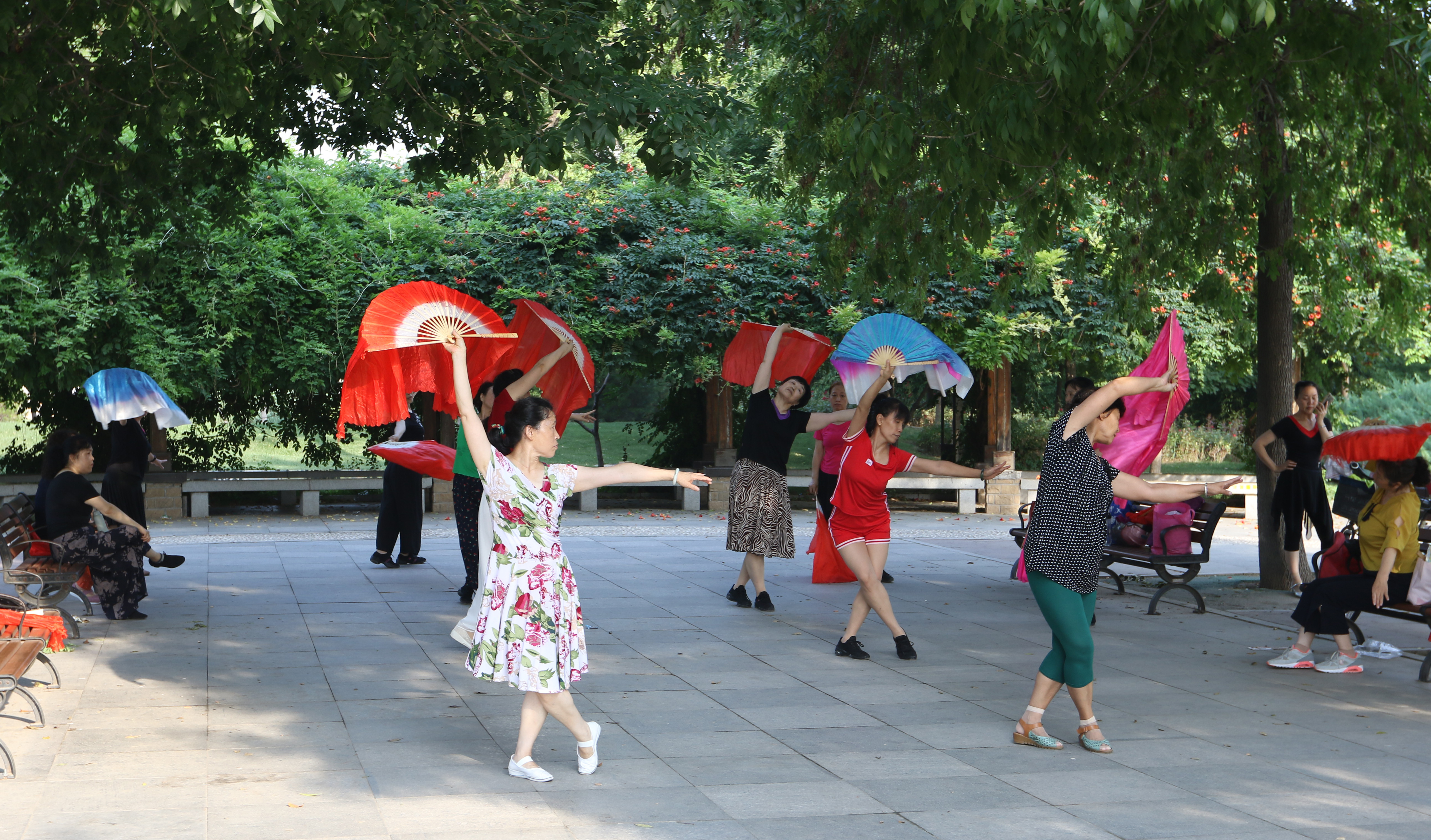 市民正在青年公園晨練。