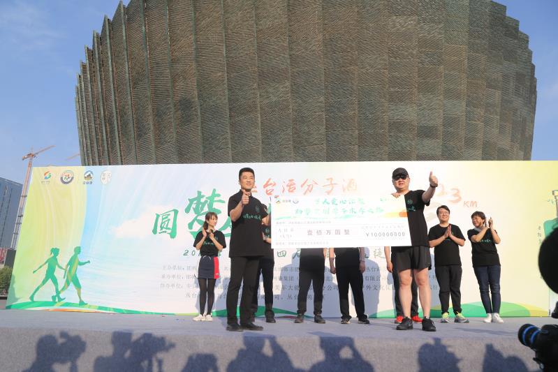 叢臺酒業(yè)銷售有限公司總經(jīng)理郭維(前排右)參加叢臺酒業(yè)公益徒步行活動。