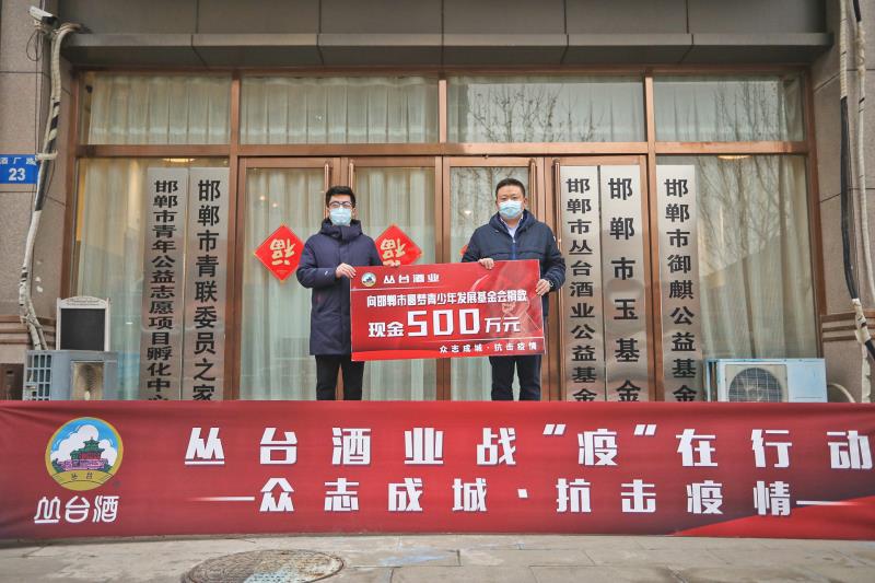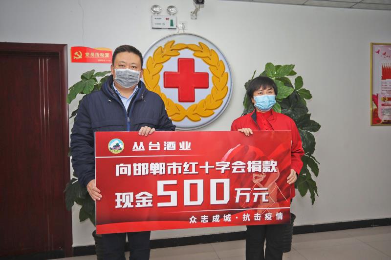 叢臺酒業(yè) " 戰(zhàn)疫 " 在行動——叢臺酒業(yè)銷售有限公司總經(jīng)理郭維代表集團(tuán)公司,分別向邯鄲市紅十字會和邯鄲市圓夢青少年發(fā)展基金會捐款 500 萬元。