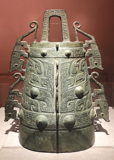 先秦至漢代,隨著禮樂制度的建立和發(fā)展,樂器更加復(fù)雜化,出現(xiàn)了編鐘、編磬等大型樂器。從商代獸面紋大鐃、西周四虎镈、夔龍紋編鐘,到春秋虢太子墓銅鉦、戰(zhàn)國淹城句鑃、漢代虎鈕淳于,可以看出青銅樂器的發(fā)展脈絡(luò)。