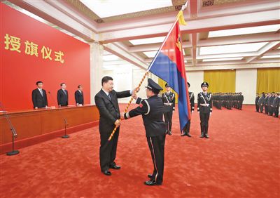 8月26日,習(xí)近平總書記把這一旗幟授予中國人民警察隊(duì)伍并致訓(xùn)詞。總書記指出,新的歷史條件下,我國人民警察要對(duì)黨忠誠、服務(wù)人民、執(zhí)法公正、紀(jì)律嚴(yán)明,全心全意為增強(qiáng)人民群眾獲得感、幸福感、安全感而努力工作,堅(jiān)決完成黨和人民賦予的使命任務(wù)。教誨諄諄,鏗鏘有力,指引著人民警察隊(duì)伍肩負(fù)新使命、向著新階段而勇毅進(jìn)發(fā)。