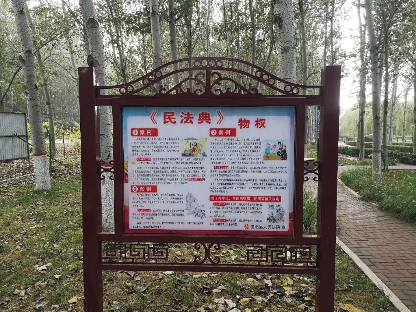 為助力法治鄉村建設,讓民法典走到群眾身邊,走入群眾心里,饒陽縣以沱陽公園為依托,精心設計,合理布置,打造民法典主題公園,并于近日亮相。