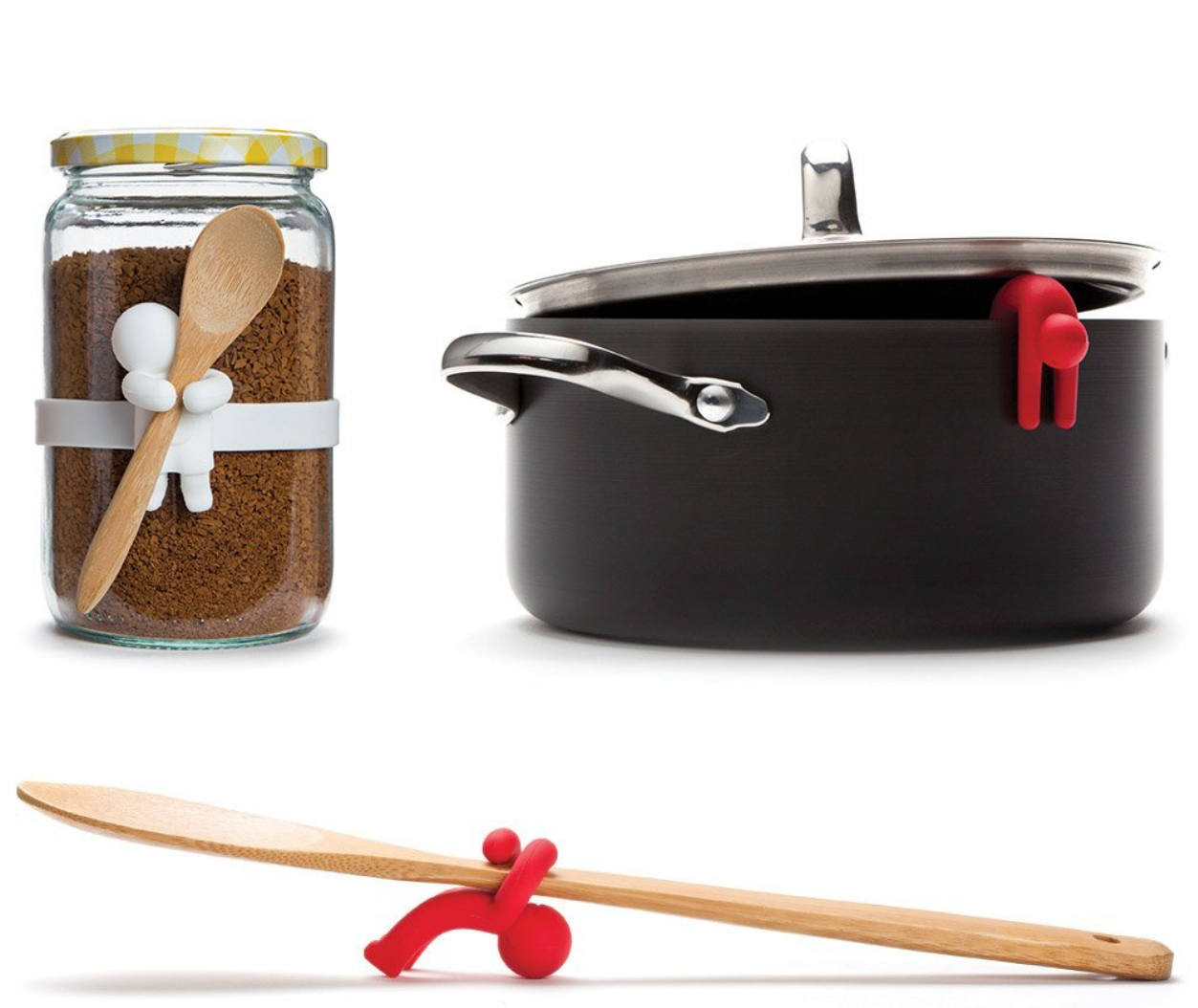 小人的造型,看起來十分可愛。不同的動作,可以有多種用途。一方面可以用作湯勺防滑助手,勺子放在鍋中,不小心便會滑入鍋中,不易取出。而有了它的固定,便沒有了湯勺滑入鍋中的煩惱。同時,它還是湯鍋散熱器,幫助排出鍋內多余的熱氣,也不會擔心水溢出鍋外。趴在鍋口邊緣的“小人”,有種莫名的喜感。