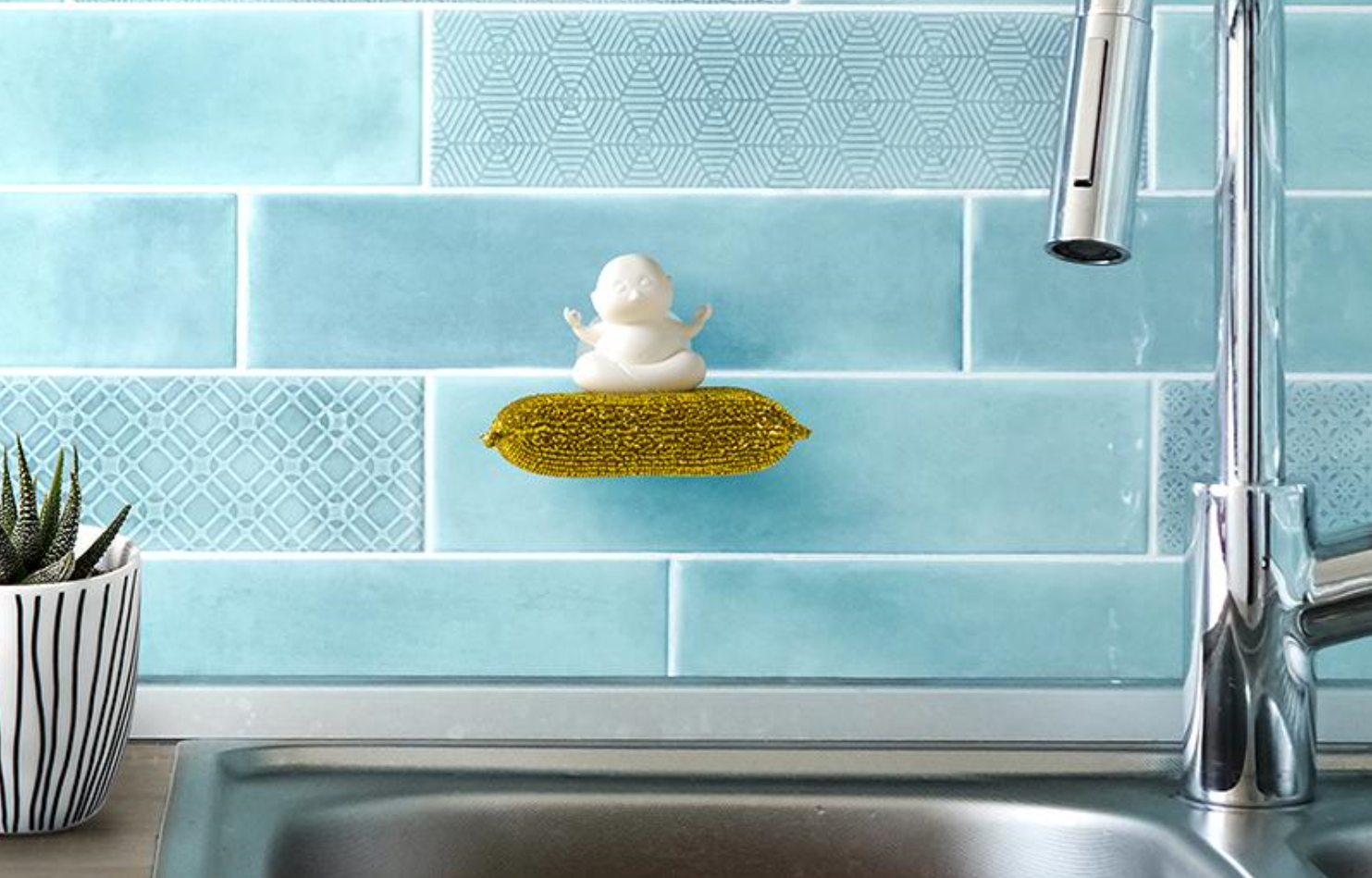 廚房用的海綿是不是經常隨手一丟?不僅不衛生,還會讓廚房操作臺面變得雜亂。而一款海綿架便能輕松解決這一問題。彌勒佛海綿架造型獨具一格,滿臉堆笑的表情,也能讓你心情愉悅。它可以附著在廚房瓷磚或水槽上,使用時方便隨時拿取。