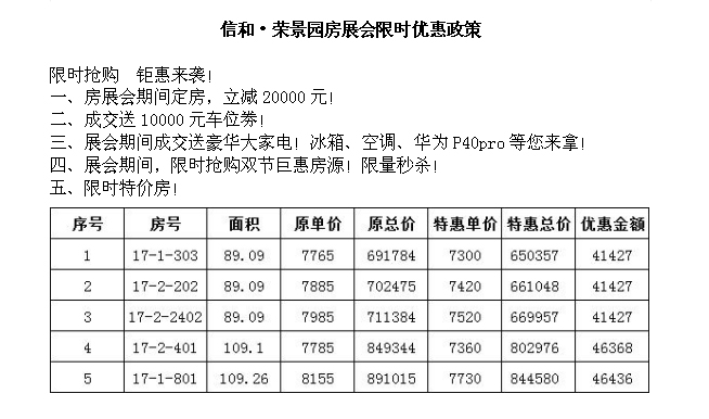 本報現(xiàn)將部分房企展會期間優(yōu)惠政策、信息在此提前發(fā)布,讓廣大市民“先睹為快”。如果您有購房需求,10月1日——3日,一定要來衡水九州廣場,這里有一場“超級實(shí)惠”的購車、購房盛會!