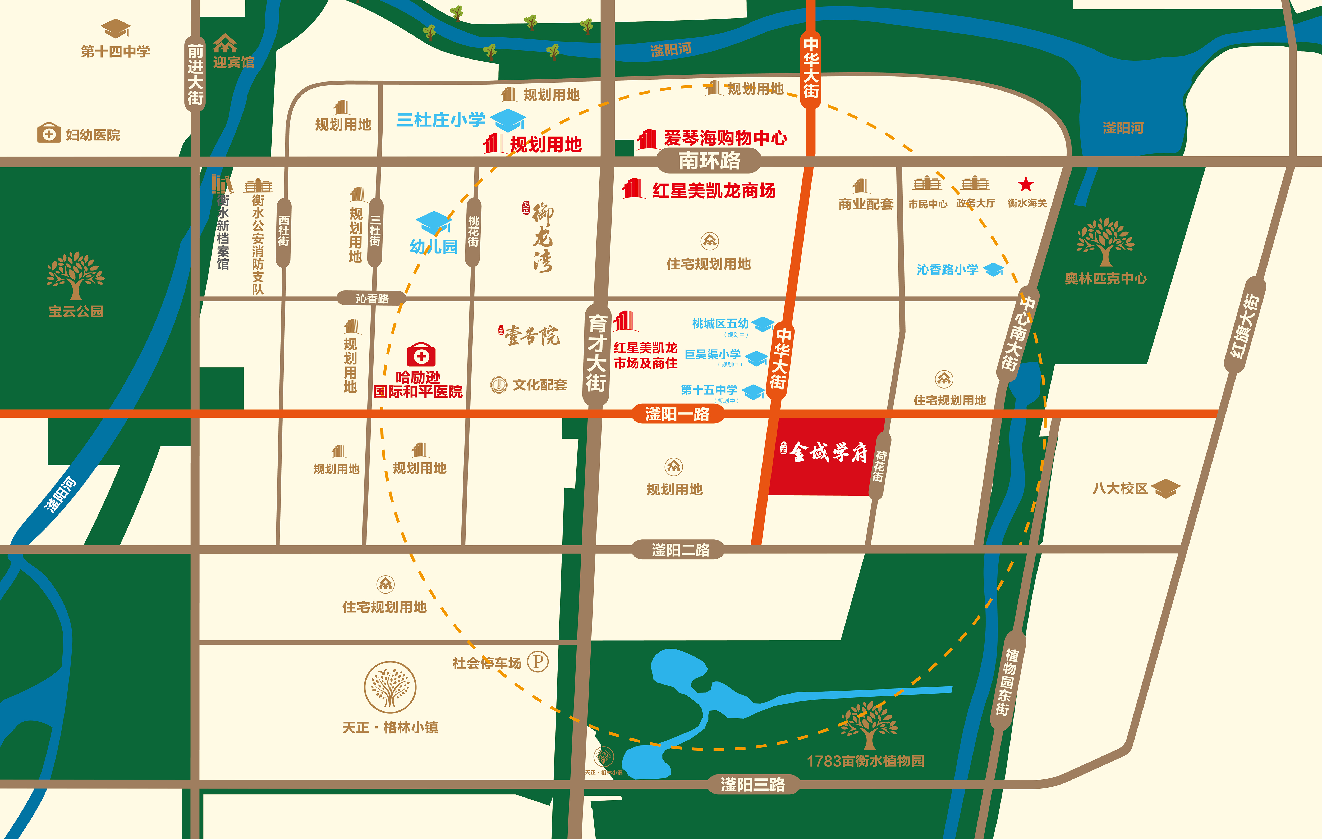 優配套,天正金域學府項目毗鄰桃城區第五幼兒園(在建中)、巨吳渠小學(在建中)、衡水第十五中學(在建中);市民中心、人力資源大廈均位于此;衡水植物園、滏陽生態公園、寶云公園、奧林匹克運動中心、哈勵遜國際和平醫院南院區(在建中)等業態環繞,坐標城南,享萬千繁華。