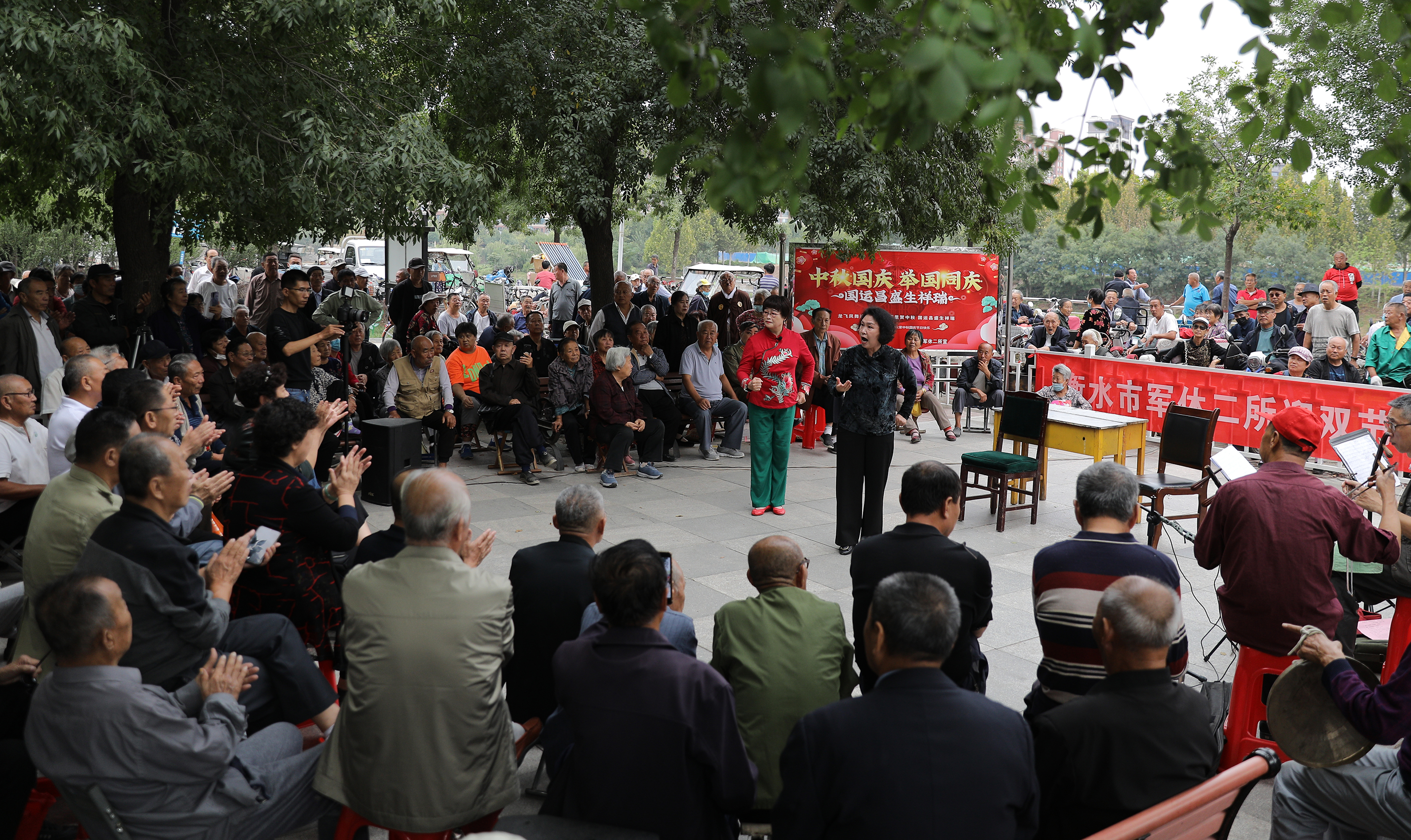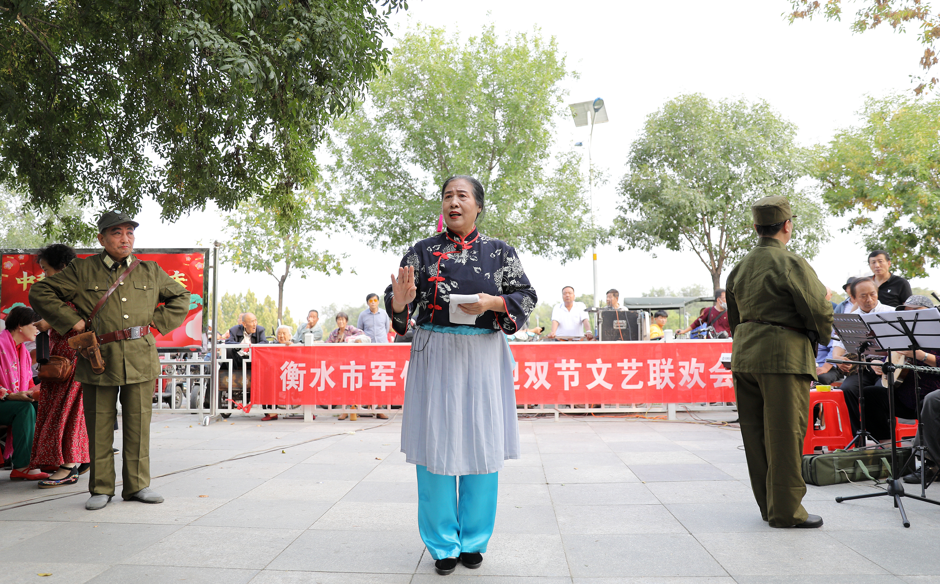 金秋送爽,丹桂飄香。9月28日下午,由衡水市退役軍人事務局軍休二所主辦的迎“雙節”軍休干部文藝匯演活動在市區青年公園舉辦。演出在沙家浜選段《軍民魚水情》中拉開帷幕,軍休干部同廣大戲迷朋友、文藝愛好者歡聚一堂,欣賞了精彩紛呈的文藝表演,戲曲《紅燈記》,歌曲《草原上升起不落的太陽》,薩克斯合《我和我的祖國》等節目表演贏得了在場觀眾的陣陣掌聲。