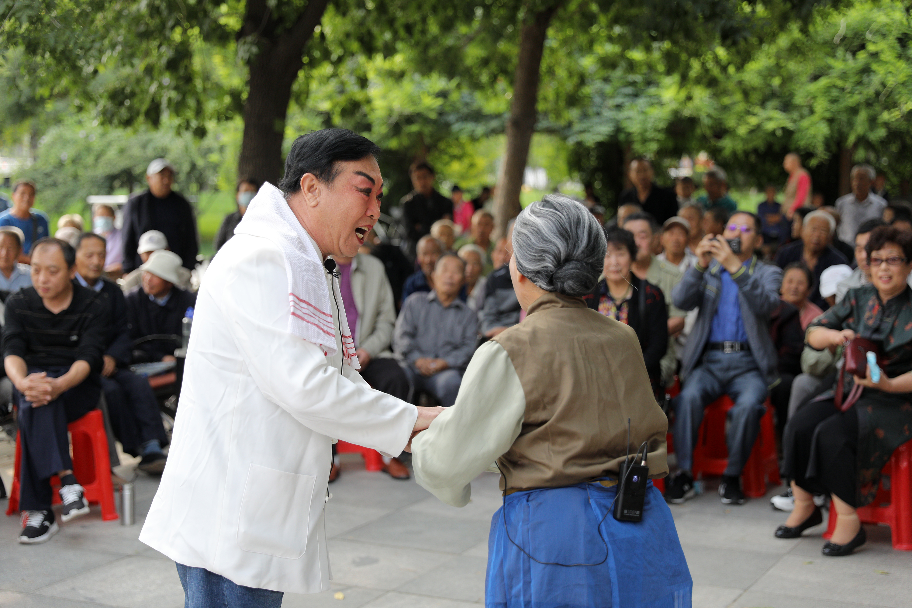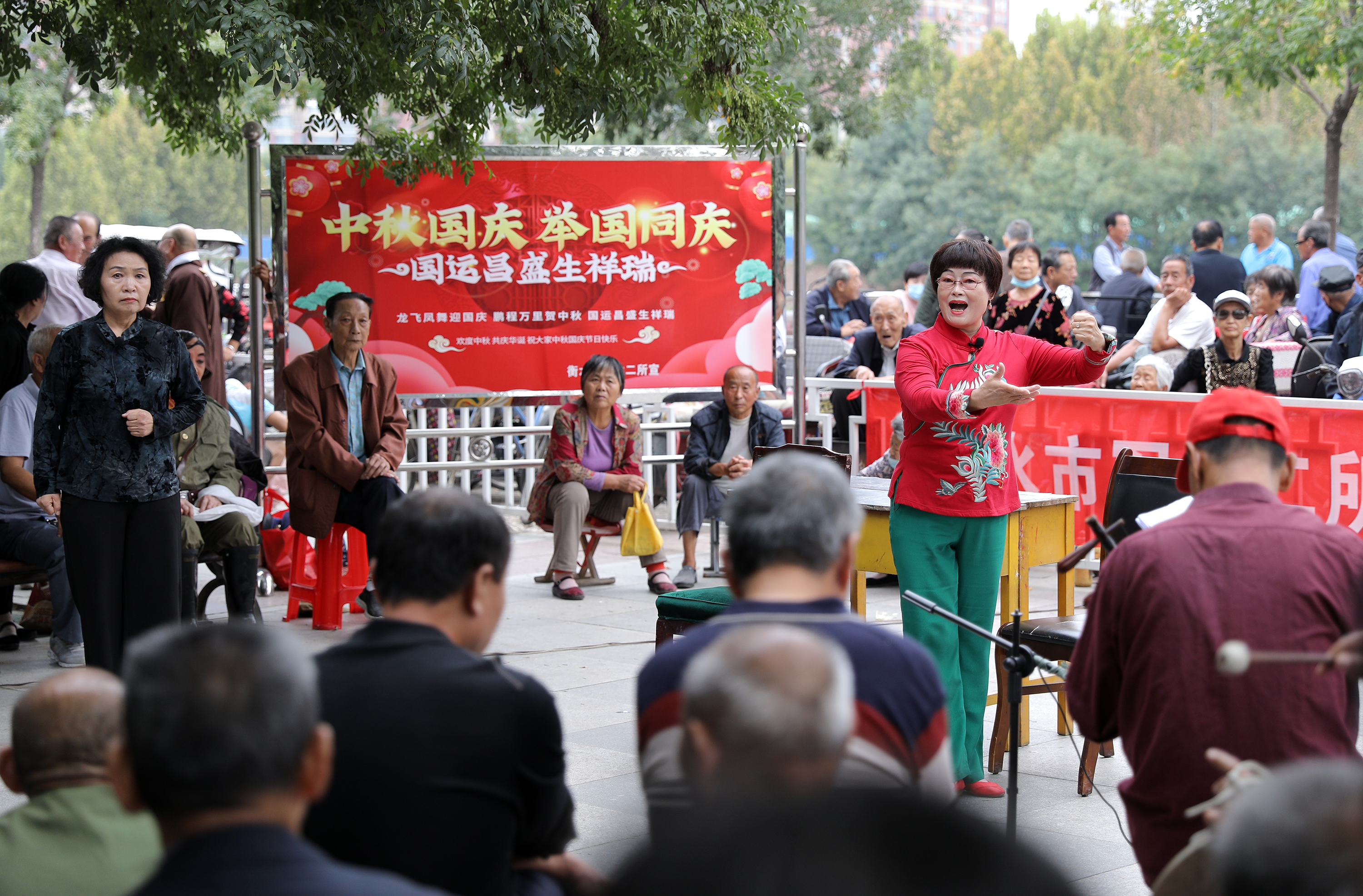 9月28日,戲曲愛好者正在為現場觀眾表演《沙家浜》選段。