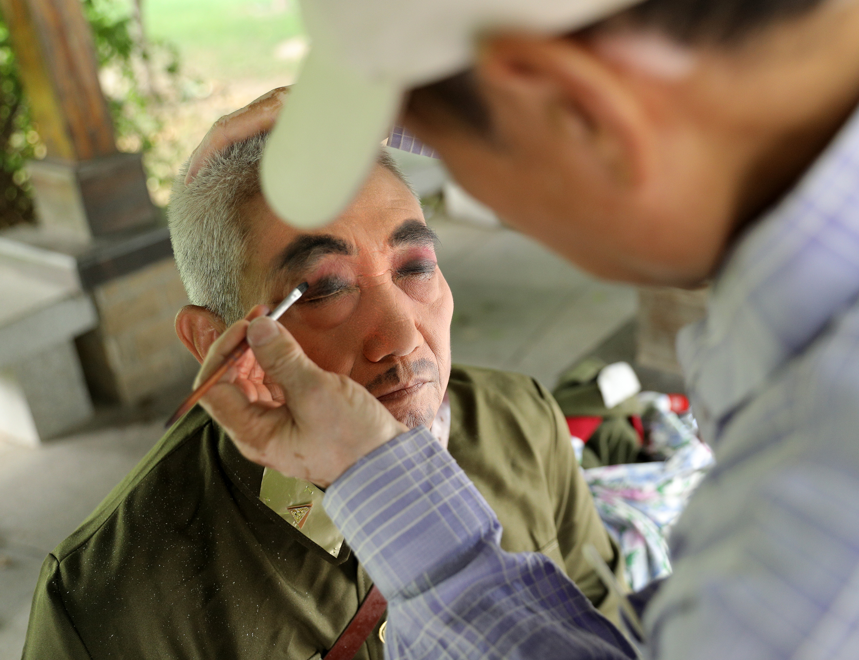 9月28日,即將上場的演員正在化妝。