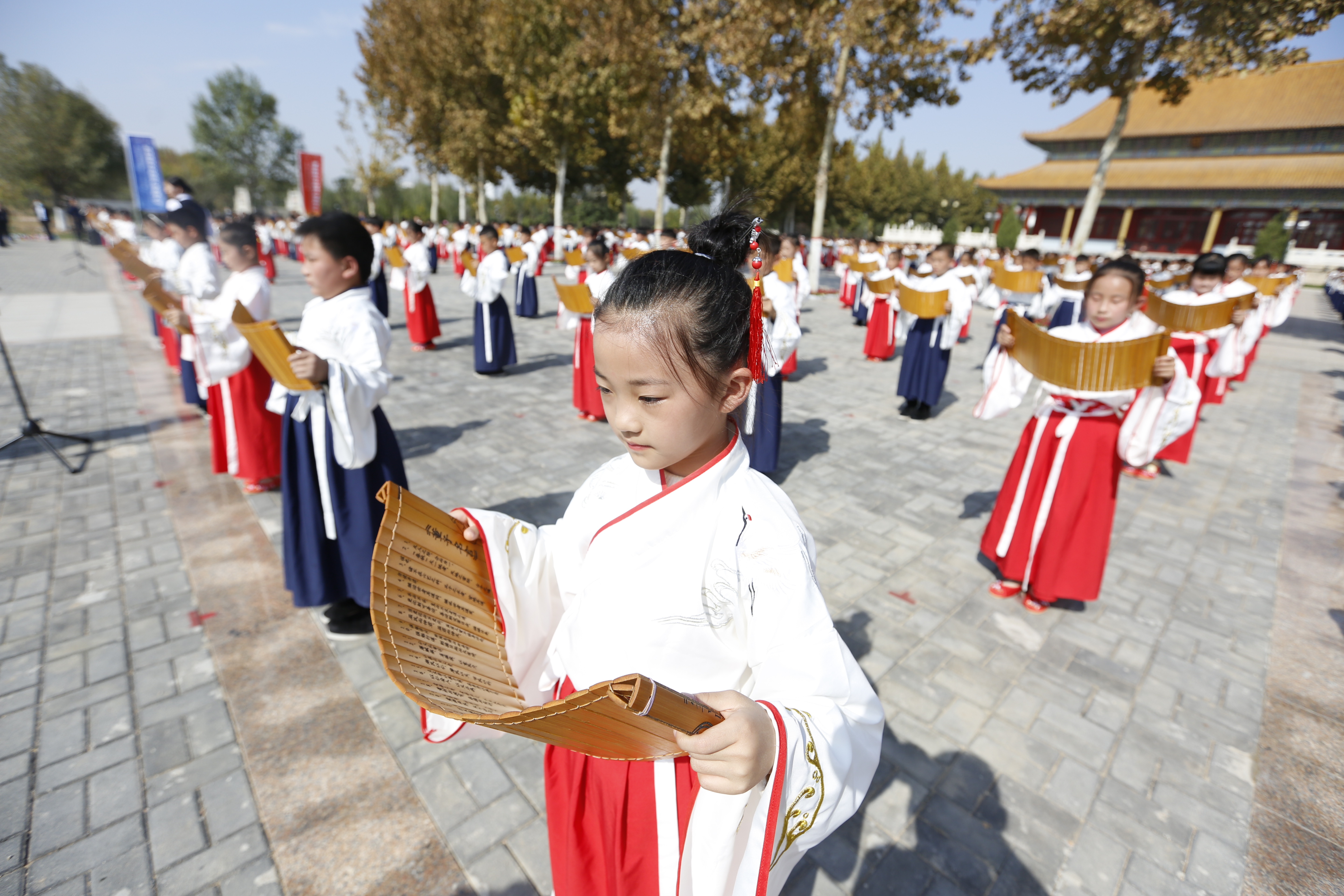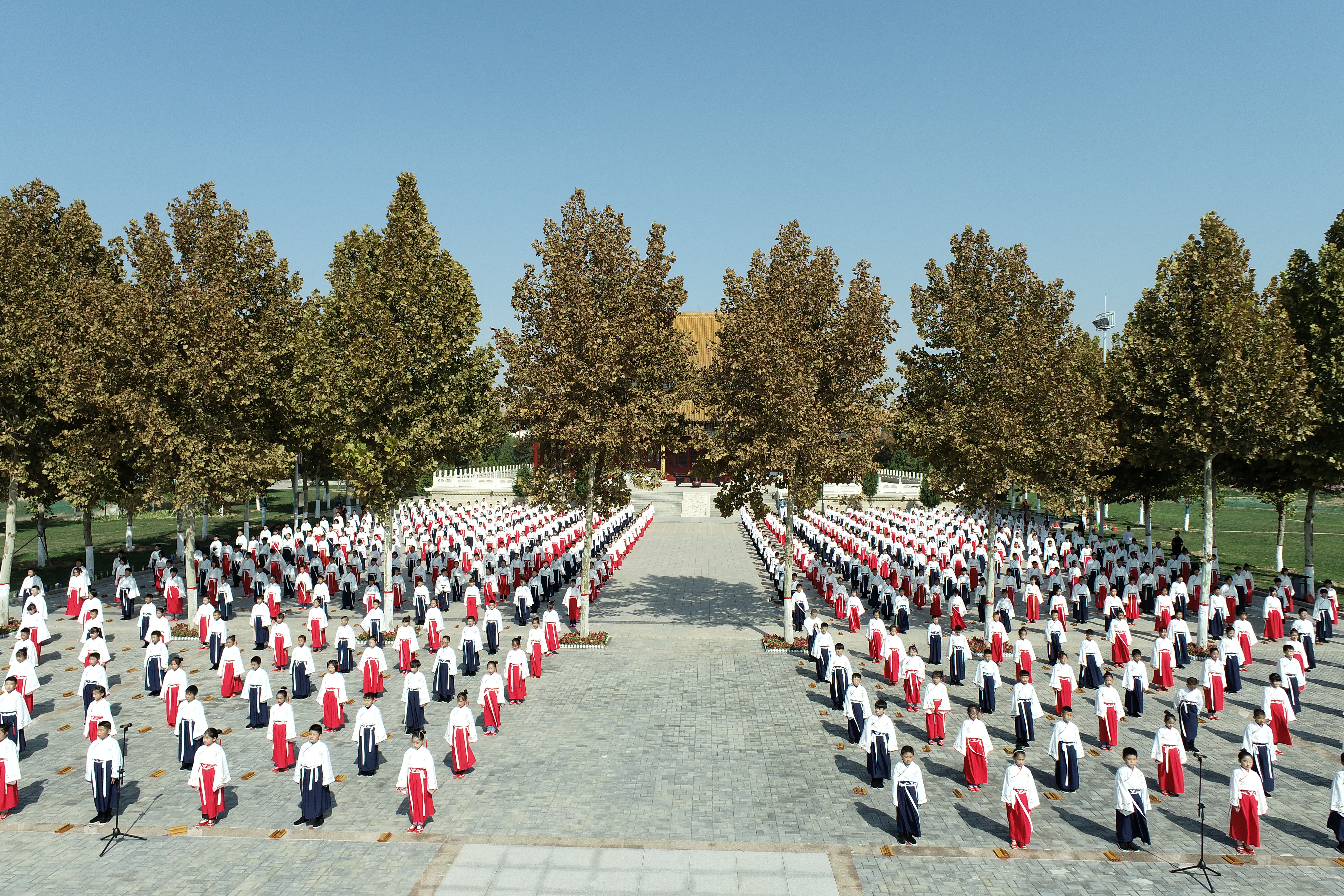 站在景縣廣川鎮(zhèn)董圣成就大道上,漢闕建筑風(fēng)格的廣川學(xué)宮大門映入眼簾,質(zhì)樸、剛健、厚重、雄偉,寓意董子文化的博大精深。款款邁向天人合一壇,懷著深深敬畏觀賞具有“漢風(fēng)儒韻”設(shè)計(jì)理念的董子書院,感受“天人之際,合而為一”的董子哲學(xué)思想,人們可以感受到沉靜、恬淡的意境,一種從容、舒適、安寧的回歸感油然而生。沿一統(tǒng)橋而下,600名小學(xué)生身著漢服,正在大殿廣場(chǎng)上誦讀《董子名言》,童聲瑯瑯,直達(dá)心底,猶如與先賢對(duì)話,耳畔回響著千年大儒一句句震撼心靈的敦敦教誨,也向游客們展現(xiàn)著國(guó)學(xué)經(jīng)典文化之美……