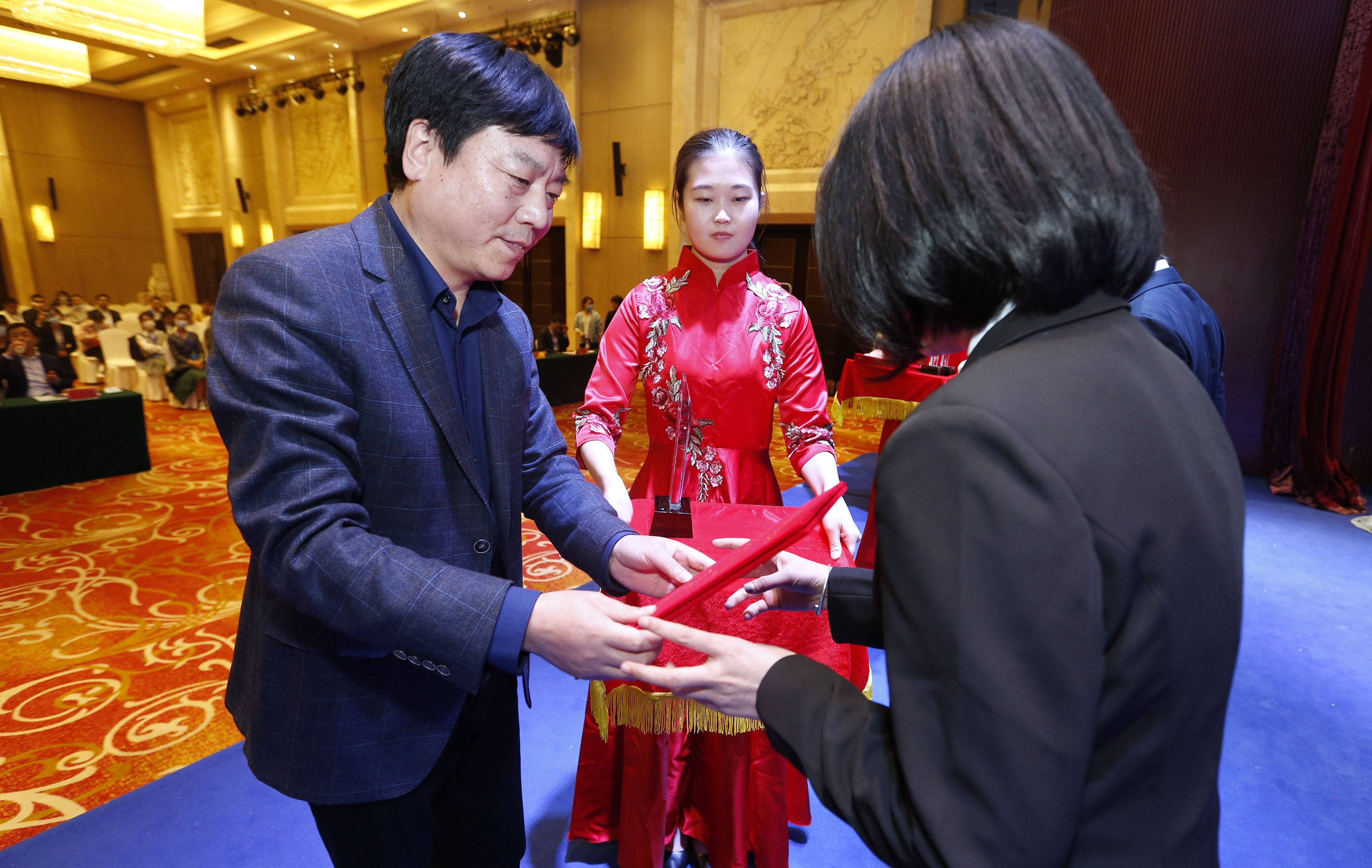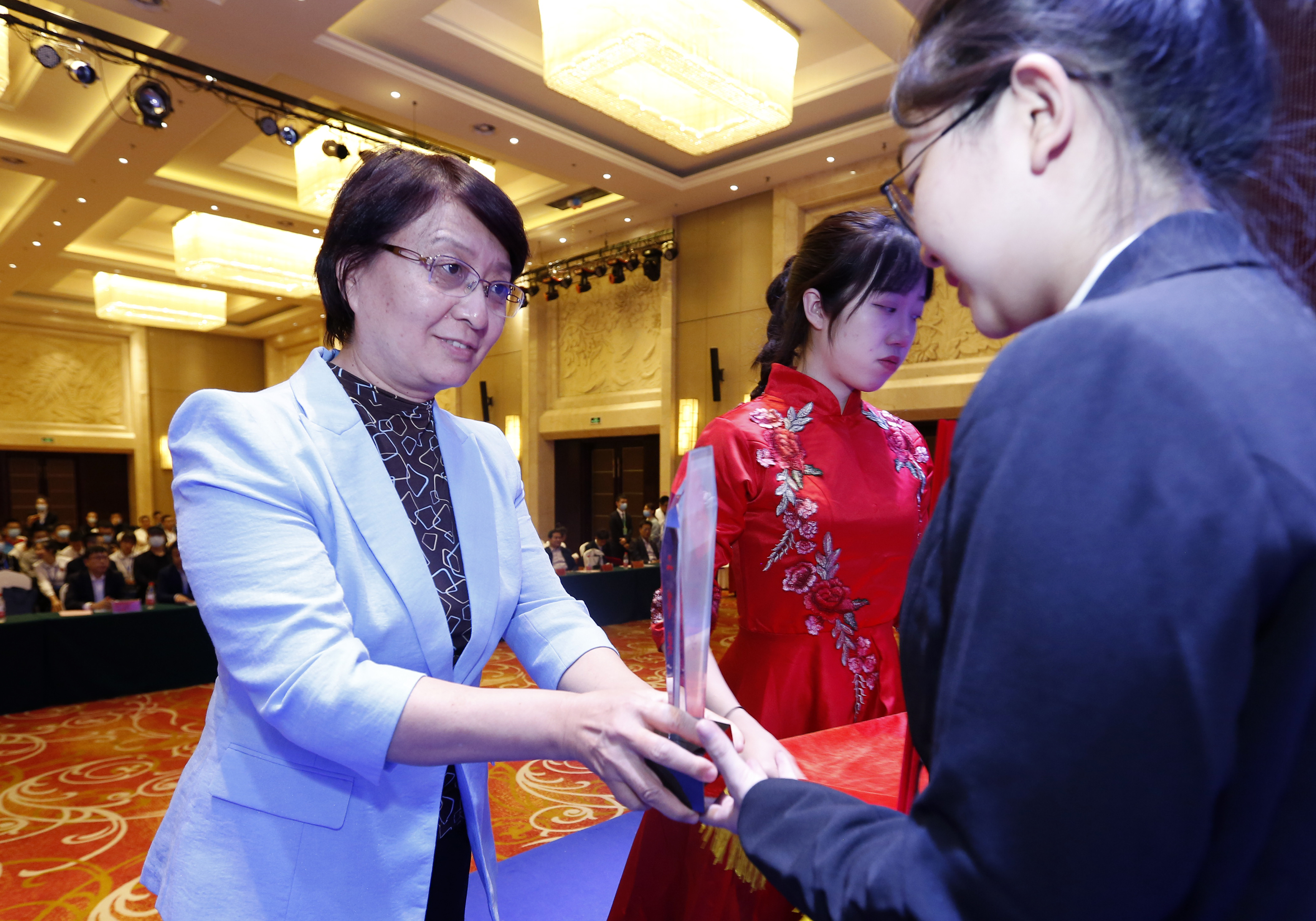 河北中華職業教育社專職副主任崔芳為獲獎團隊頒獎