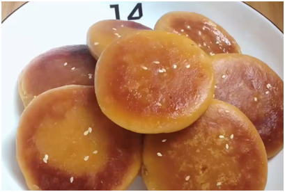 這樣柿子餅就做好了,看起來(lái)兩面金黃,咬一口綿軟香甜,唇齒間透著濃濃的豆沙味兒,想不好吃都難。