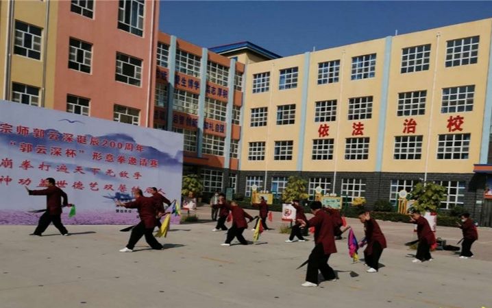 此次活動由深州市體育局主辦、深州市傳統武術協會承辦,主題為“緬懷郭派宗師,交流形意技藝”。主會場設在深州市,祭祀緬懷儀式在深州東安莊郭云深墓前舉行,開幕式和形意拳技藝展演賽在深州市北街小學進行。開幕之后,衡水市武術協會代表隊、深州郭云深形意拳神道傳承中心、邯鄲市尚禮形意拳研究會、任丘形意拳代表隊等17 支代表隊共 223 人進行了形意拳技藝展演賽。由深州泰和武館25 名學員集體表演的“深州形意風”成為本次邀請賽的壓軸戲,展示了深州形意少年的風采,贏得滿堂喝彩。