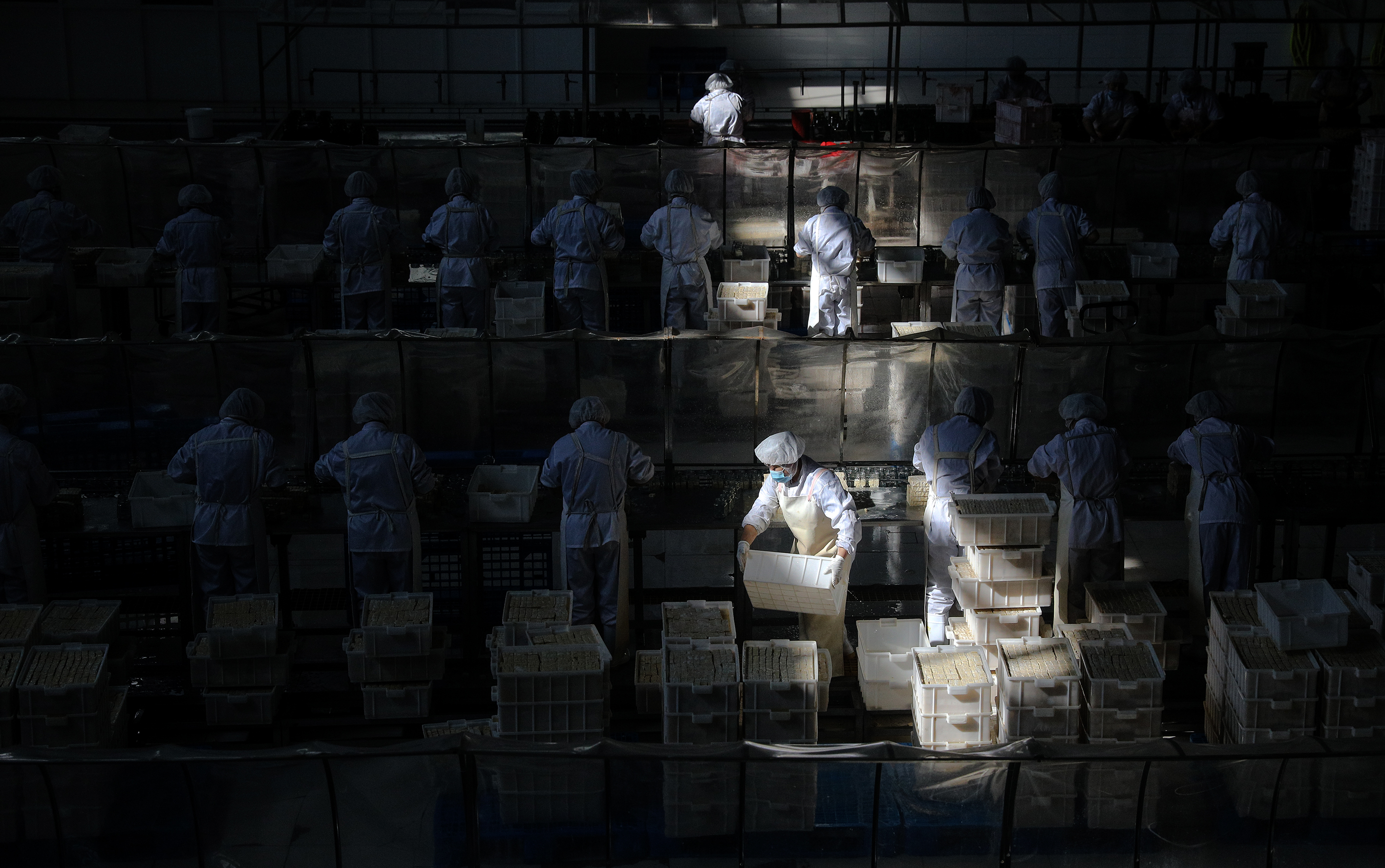 北京寶金龍(衡水)食品有限公司王致和腐乳生產基地車間一角。