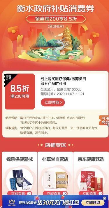 消費券領取方法:自11月7日起,可通過在京東APP搜索關鍵詞“衡水消費券”、“衡水政府補貼消費券”、“衡水補貼消費券”、“衡水電子消費券”領取衡水專場消費券,購買活動甄選的衡水本地品牌商品。