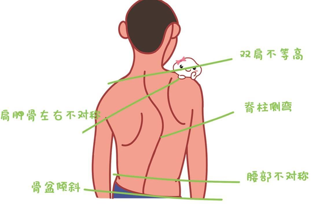 馬軍說,早期脊柱側彎是不容易被發現的,特別是孩子穿著衣服時。作為家長,平時要對孩子多留心觀察。通常情況下,如果存在脊柱側彎,可能孩子穿的上衣兩個領口會不平;或者一個肩高一個肩矮;或后背有隆起;或脫衣服后皮膚一側有皺褶;甚至骨盆髖部一高一矮,腿一長一短。