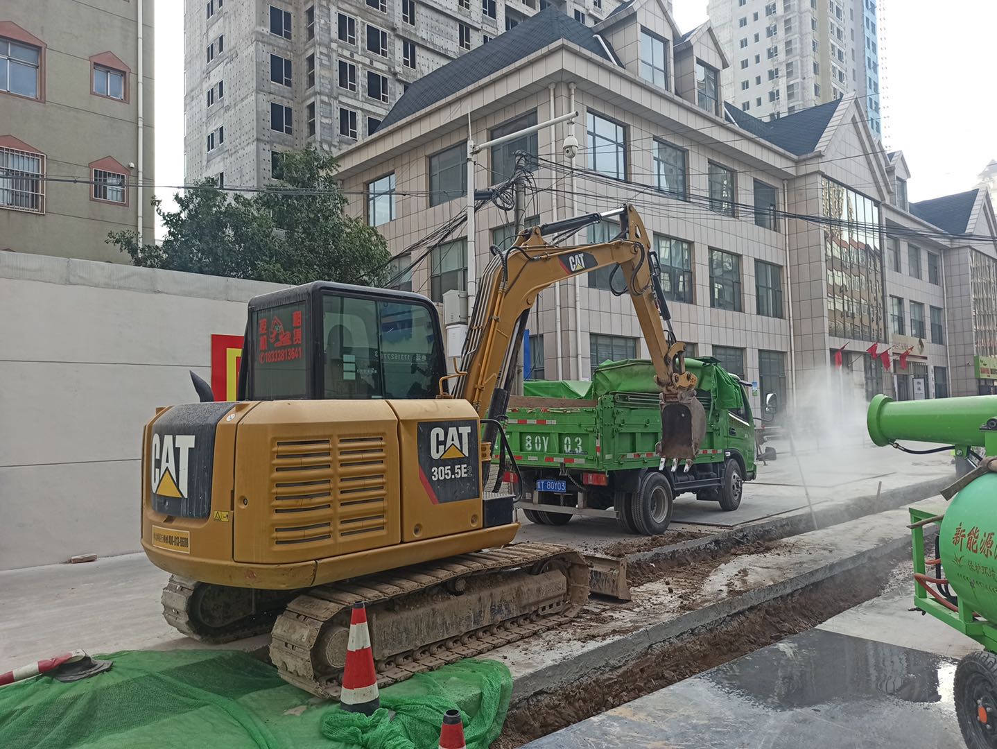 紅旗大街雨污分流進入填平階段,施工人員正在進行填平作業。