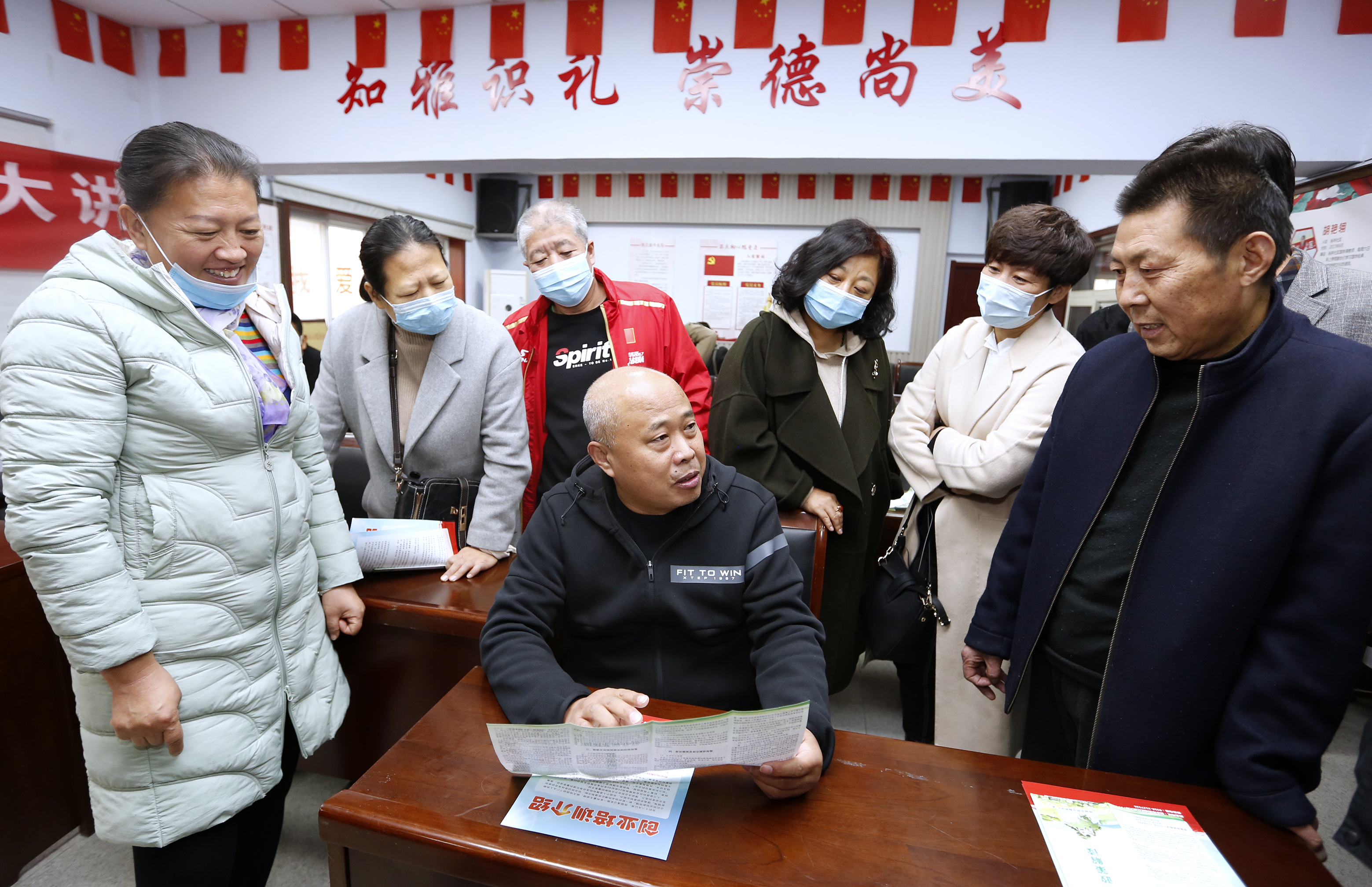 中華街道大陸裕豐社區群眾正在探討宣傳資料。