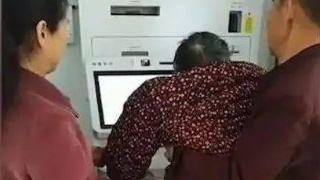 為了進行視頻認證,這位年歲已高的老人被家人抱起來,膝蓋彎曲,勉強進行人臉識別,十分吃力。