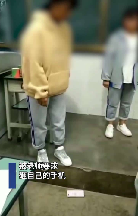 12月1日,一中學“3名學生在教室講臺被勒令自行砸手機”的視頻引起網友熱議。