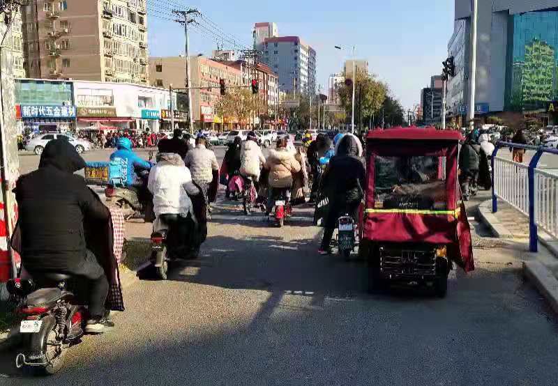 隨后,記者走訪中華大街與和平路交叉口、紅旗大街與勝利路交叉口等多個路口發(fā)現(xiàn),上下班高峰期時段,部分行人在非機(jī)動車道上通過路口右轉(zhuǎn)時經(jīng)常受到阻礙。在此希望廣大市民出行時在非機(jī)動車道等候信號燈,不管是直行或左拐盡量停靠在左側(cè),給右轉(zhuǎn)的行人留出空間,為彼此創(chuàng)造一個暢通無阻的出行環(huán)境。