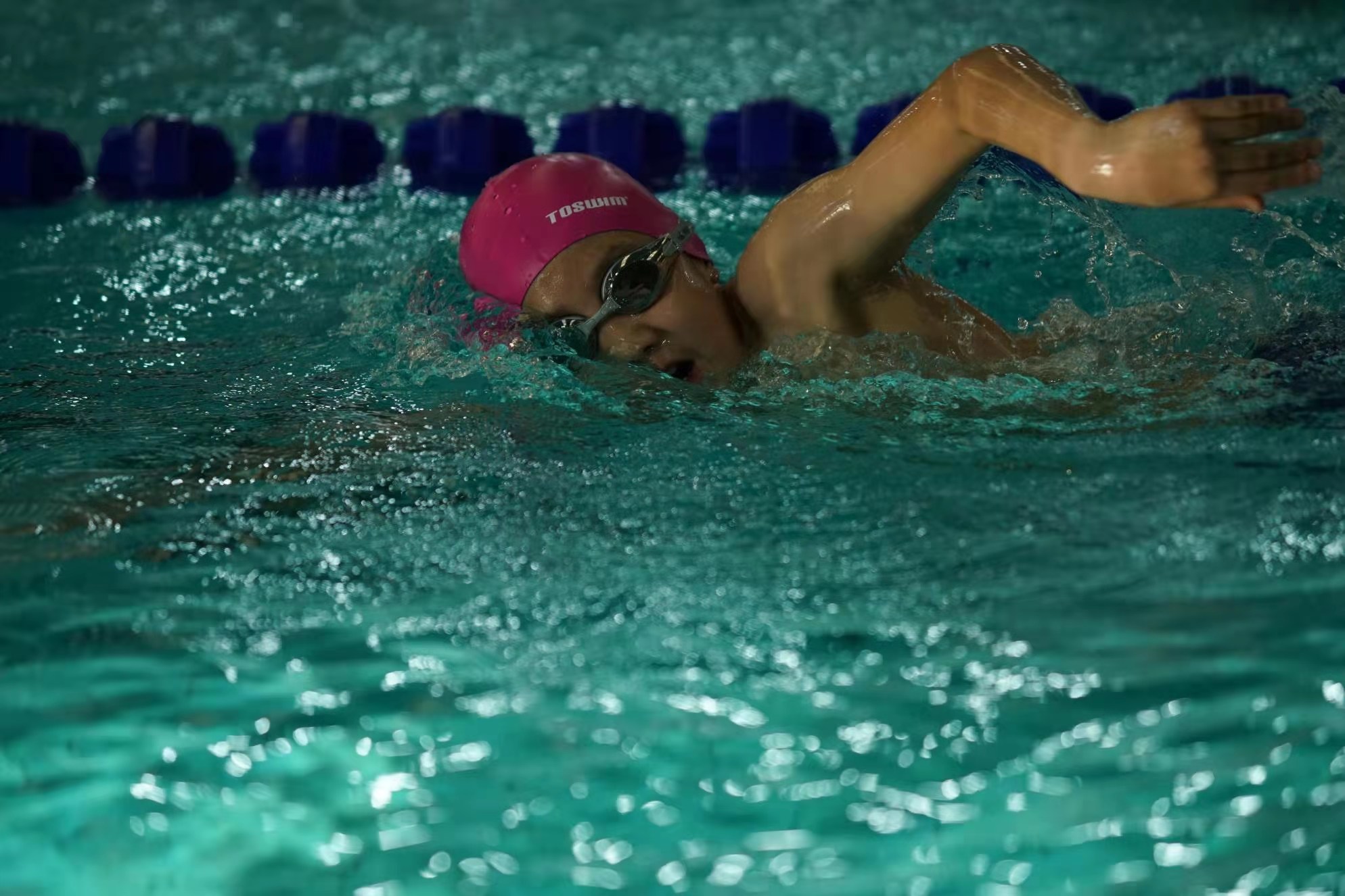 上午9時許,隨著發令員的哨笛響起,小游泳健兒們如同一條條錦鯉躍入池中,劈波斬浪,你追我趕,展開激烈的水中角逐。無論哪種泳姿,每個動作都展現出運動員們的矯健有力與輕快自由,令人賞心悅目。泳池里浪花飛濺,比賽精彩不斷,現場氣氛既緊張熱烈又和諧愉悅。